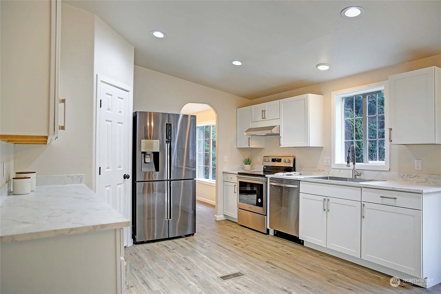 Welcome to your private oasis! Updated home on 10.25 acres of beautiful, secluded surroundings. Enjoy the serenity of the private creek running through the backyard. Minutes from Big Lake’s public boat launch for a day of fishing or indulging in fun-filled days on the water. Step inside to a spacious floor plan perfect for entertaining. Primary bedroom with ensuite, walk-in closet, and sitting area. Updates bring a modern touch to the interior. vaulted ceiling and lots of windows bringing in natural light. The property features a flat area with water, power, and an old septic system (not in county records, buyer to verify). This space could be used for various outdoor activities, gardening, or even the potential for additional structures.