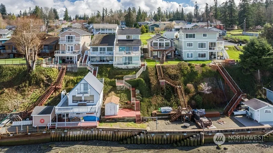 Love where you live with this spectacular Warm Beach water front property. 3060 sq. feet of living space, two decks, and ample windows to allow for light and views of Camano Island, Port Susan, and the Olympic Mountains. Home boasts 30 feet of water front with an out building for storing gear for the sound. Full kitchen on the main floor and an additional full kitchen downstairs. Full bath on the top floor between the two bedrooms. There is a 3/4 bath downstairs. Stairs to the beach. The deck is unique, situated and constructed for privacy. Outdoor shower on lower deck. Enjoy the best of Puget Sound living. Close to Stanwood and Smokey Point. See this property today.