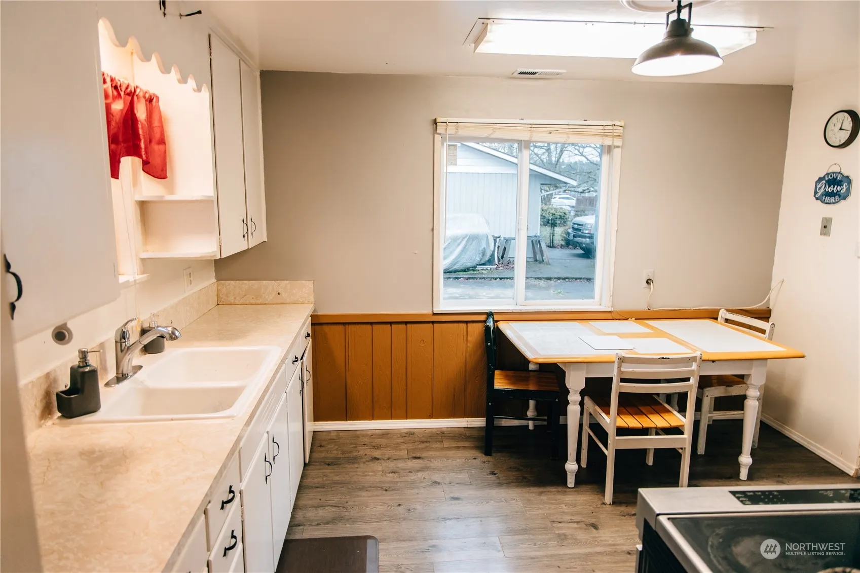 Step into single-floor living with an array of fantastic features. Three LG Rooms and two FULL baths! The spacious living room is bathed in natural light, and the kitchen boasts newer flooring and appliances. The large primary bedroom offers plenty of closet space and an updated full bath. Secondary Bedrooms are generously sized for your comfort. Pantry and Laundry Area ample storage space. Newer furnace (2018) and newer electrical panel (2019) provide for maintenance-free living.Don’t overlook the finished flex space behind the garage, perfect for home office or school activities. Enjoy the convenience of an oversized 2-car garage with a wood stove, a private fully fenced backyard with a storage shed, fruit trees, and a playset.