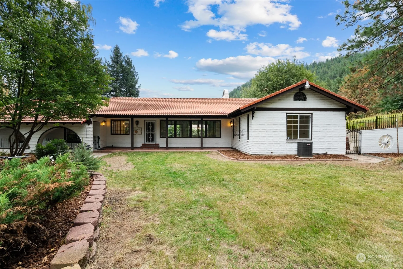What an absolutely gorgeous home tucked far away from the hustle and bustle of Leavenworth boasting incredible views! The architecture of this European style rambler with a large basement is absolutely stunning. You will love the arches throughout the interior and exterior and all of the wrought iron fencing and light fixtures as well as the very private patio with brick accents and center firepit. This home has been completely remodeled and is ready for you to move in and enjoy the solitude on this very private property with over an acre to spread out on. Lots of room for you to expand and even build an ADU on the lower section. Attached double car garage and all one level living with a possible separate living quarters downstairs.