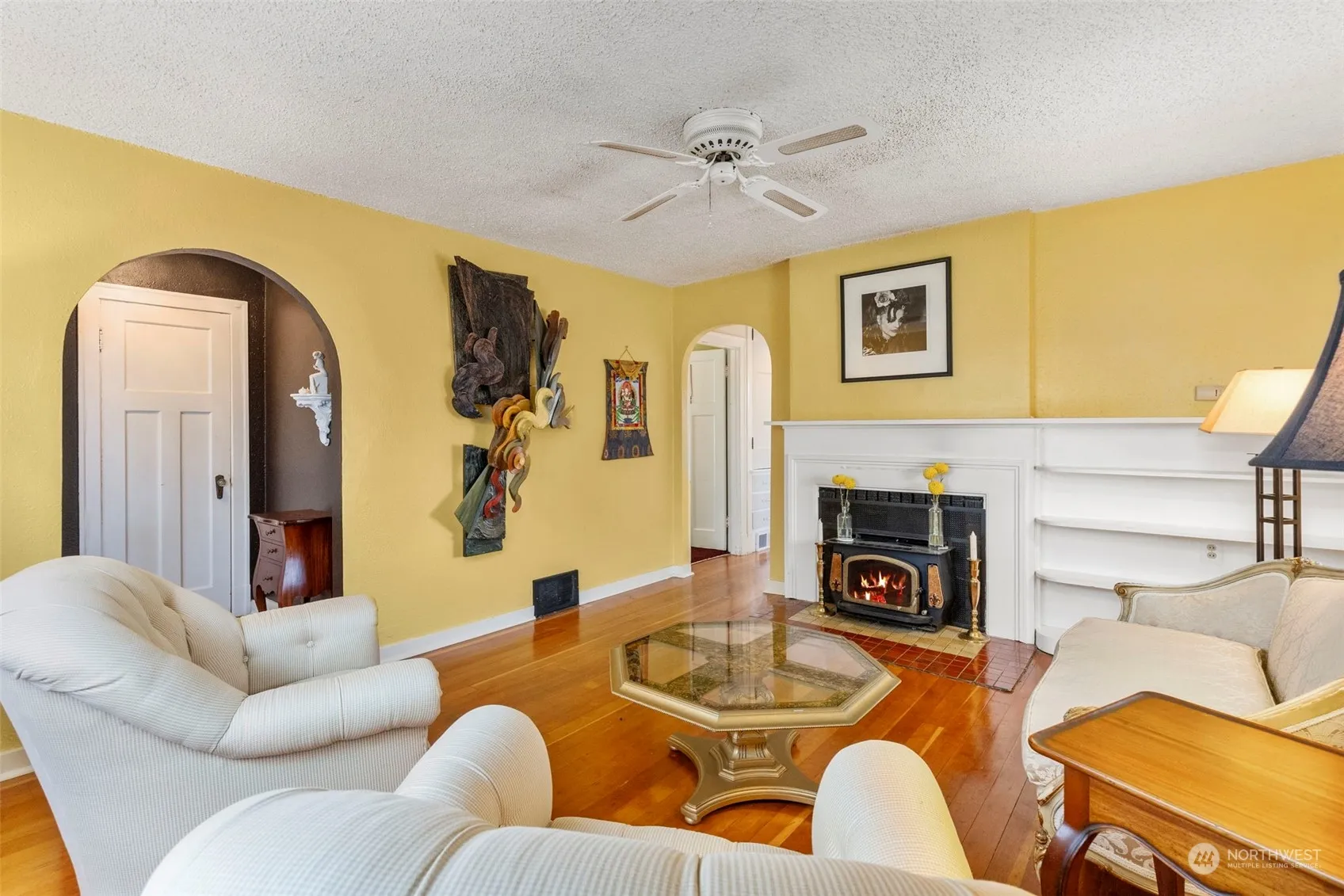 This home exudes vintage charm. Original glass doorknobs, to the stunning fir floors, arched entries & custom built ins, you’ll harken back to a time when homes had personality. Solidly built as Navy housing in 1919 & a stones throw from the shipyard, ferry, hwy 3 & bustling downtown Bremerton. 4th St is extra wide as it leads to a beautiful park, offers loads of parking, yet off the main flow of traffic. This charming bungalow sits on a corner lot with a peek-a-boo view of the Olympics from the kitchen & living room. Nice updates, but plenty of vintage in the bathroom & kitchen. Fisher Paykel double dishwasher & original cabinets in the kitchen. Nice space in dry basement. Entertain in the terraced back yard. Talk to the city about an ADU!