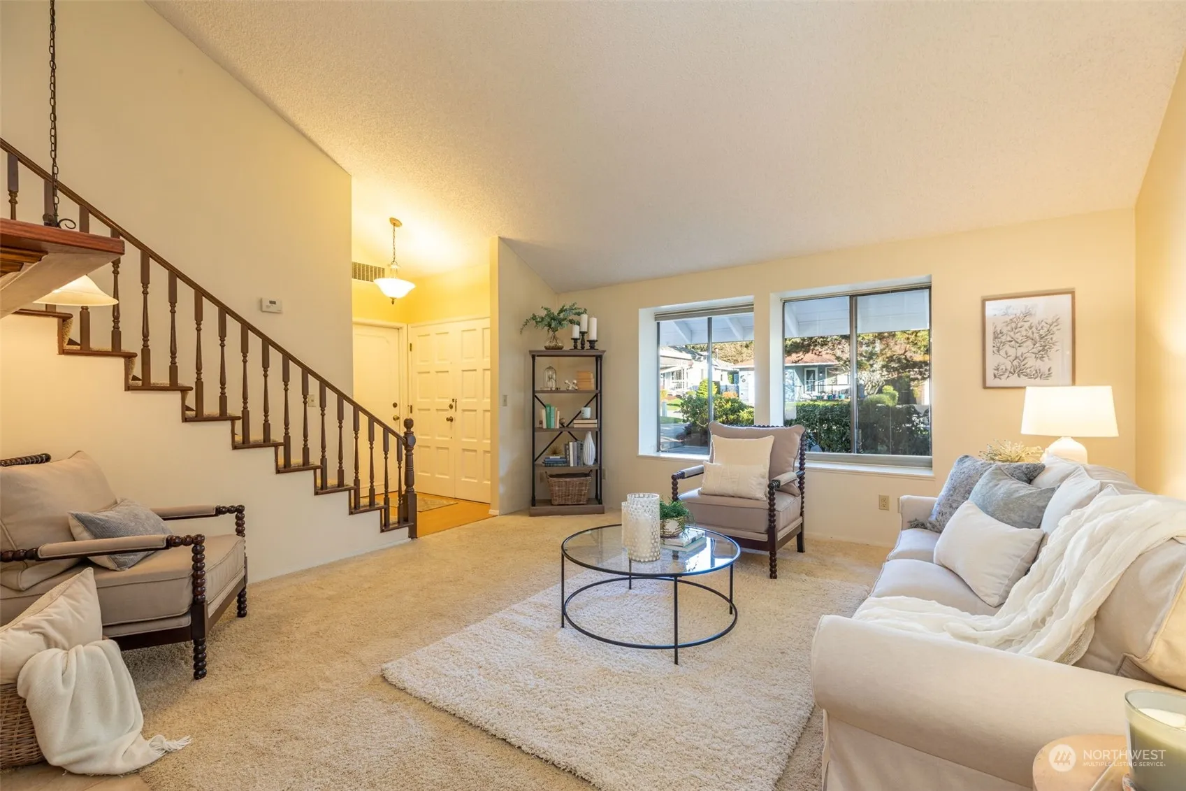 Meticulously maintained 3-bedroom 2-bath home in beautiful Huntington Park. 2 bedrooms and 1 bath are on the main floor. 1-bedroom and a full bath are upstairs perfect for a guest suite. The spacious living room features a gas fireplace and wall of windows. The light filled kitchen looks out to the serene green belt. The dining room has large glass slider that opens to a new trex deck, making outside eating and entertaining an ease. Upstairs is a loft with a secret room! Come see what you would do with this additional square footage. The landscaping is pristine! The HOA mow’s your lawn and provides a club house, pool & hot tub, games and classes, tons of walking trails all for just $148.00 per month! Huntington Park is a 55+ community.