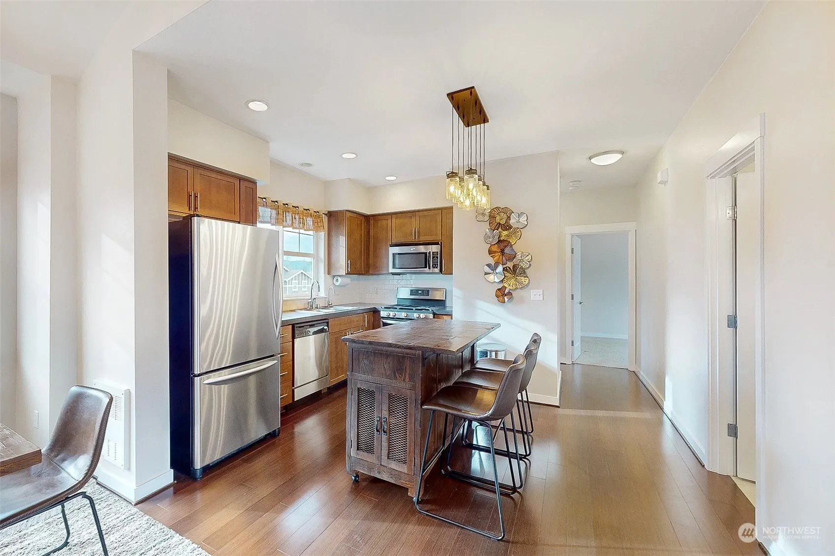 Spectacular tranquil living in Issaquah Highland with Tiger Mountain view. This condo is just like single-family house without sharing common walls. Vaulted ceiling, window walls and south exposure bring abundant nature lights into house. Spacious open floor plan has positive vibe in living and dining area w/ quartz counters, customized kitchen island and SS appliances. Primary bedroom with walk-in closet and private access to the bathroom. From the kitchen window, sighting of Tiger Moutain bring more energy into your morning coffee. High speed Fiber internet support smart home. One car garage is next to the stair. Issaquah Highlands is a convenance community with Swedish Hospital, Safeway, dining, parks etc, and easy access to I-90.