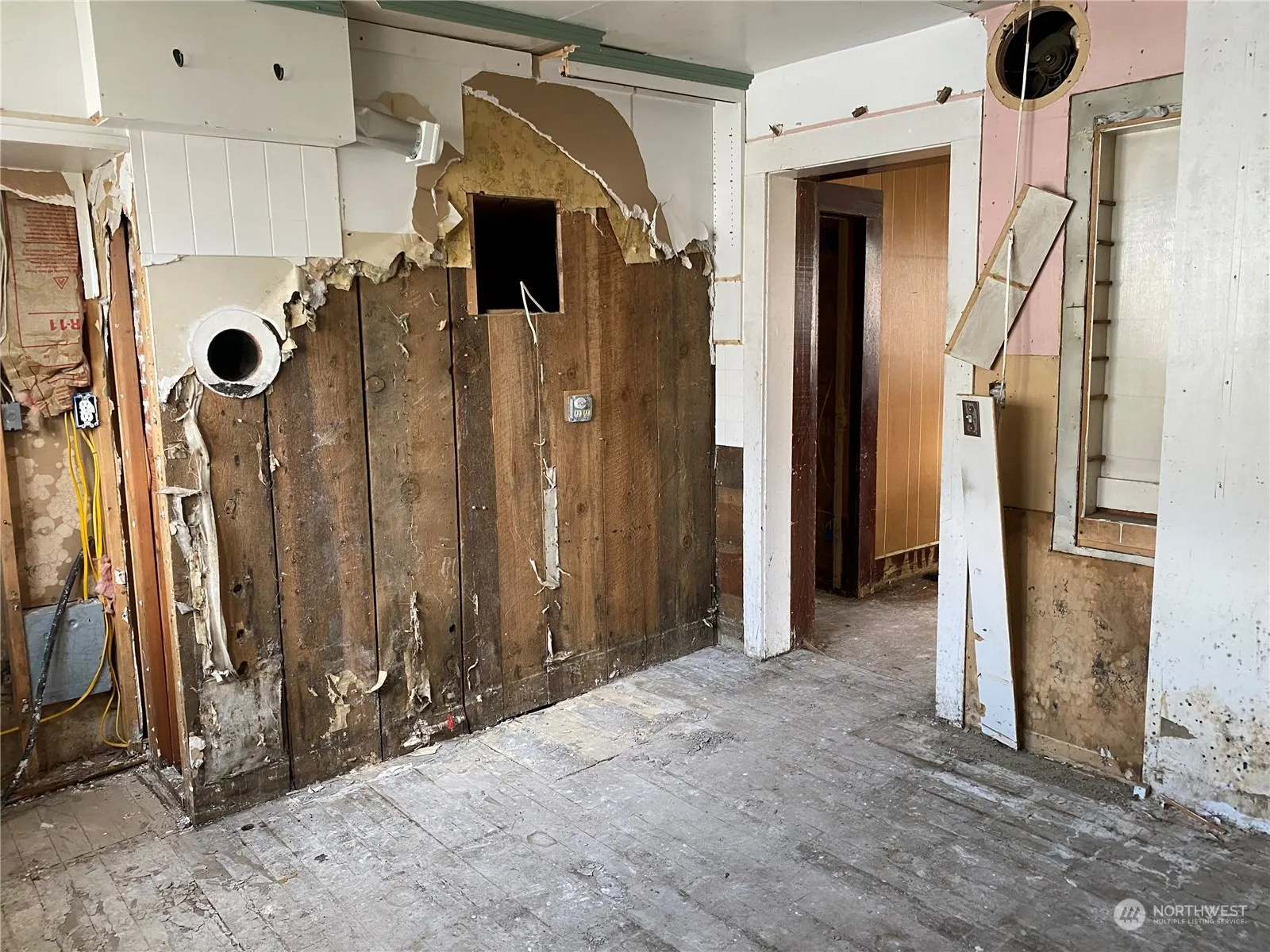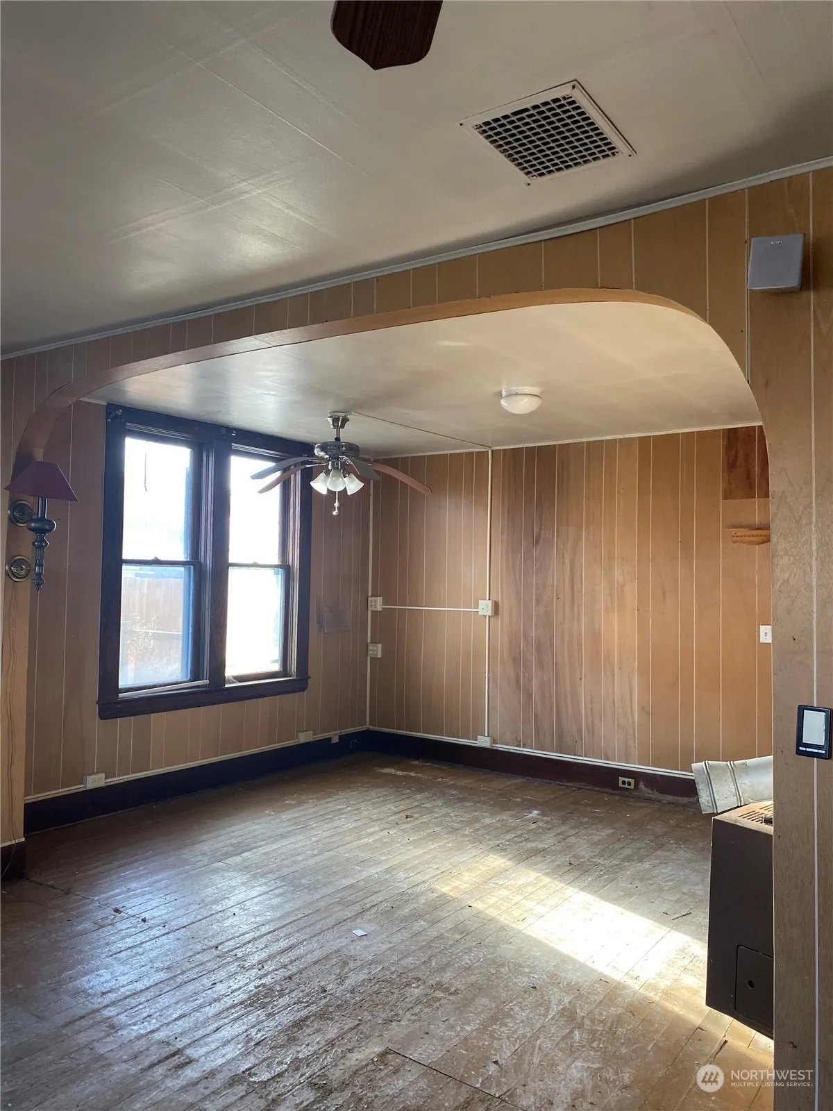 Classic 1900s home ready for your personal touches. Welcoming covered porch. Large living room and formal dinning room. Charming stair case leading up to two generously sized bedrooms. Property offers a fantastic approximate 25′ x 60′ garage/shop and carport. Enclosed shop area features a concrete pad, cabinets and shelving for work and storage, work bench and wood stove to keep you toasty while you work. Attached carport could easily accommodate an RV.