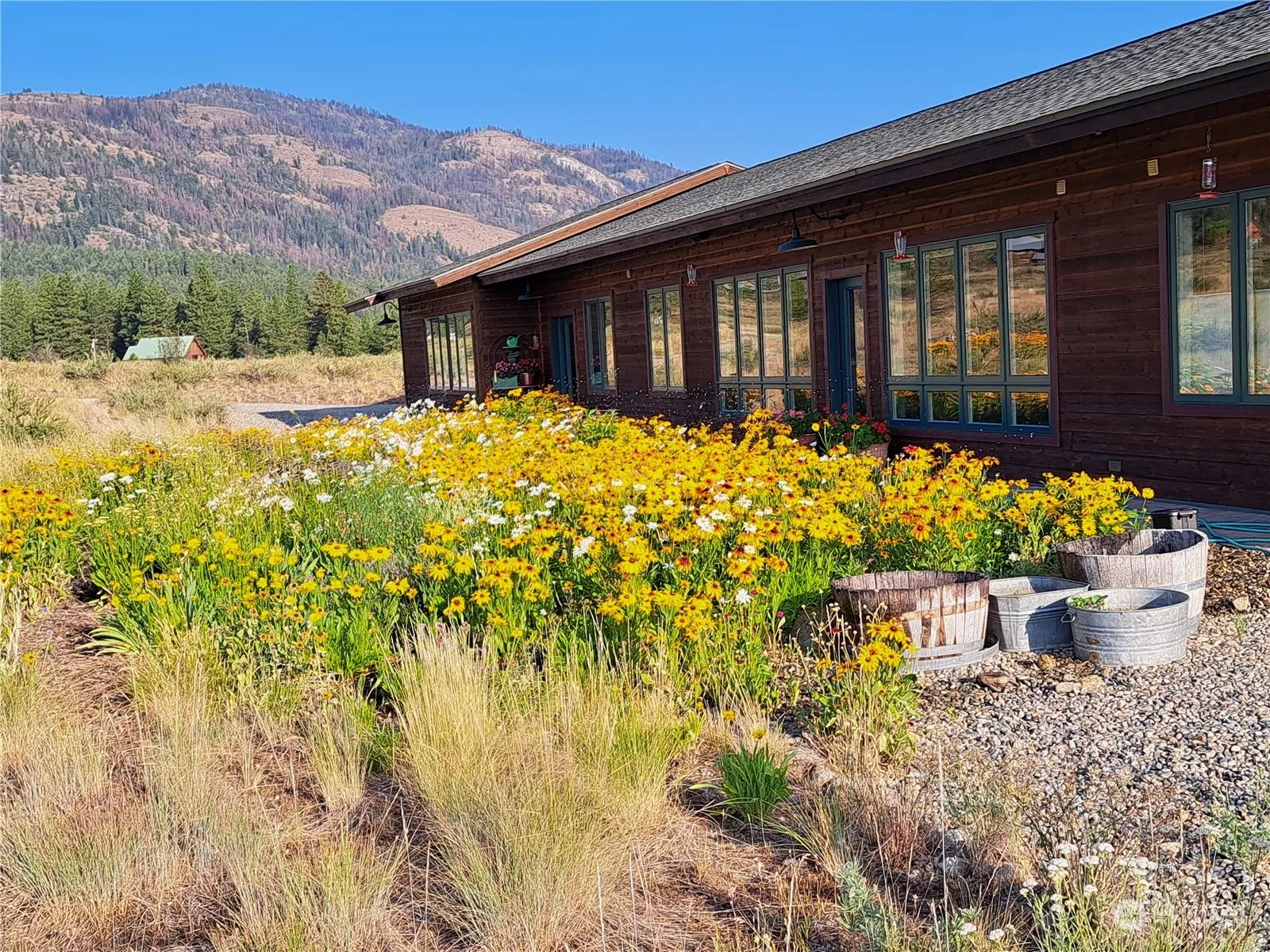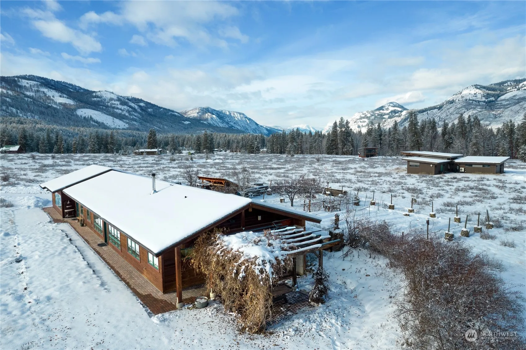 Let it snow! 5 acres w contemporary home on Nordic ski trail! Includes property owner free seasons passes for the entire household! Desirable location offers Nordic skiing, dog walks, cycling & hiking right out the door. Only minutes to public lands for addt’l adventures & exploring. Efficient 3 bdrm/2 bath single level home w ensuite primary bedroom. Sunny open floorplan encourages gathering lg & small. Wall of windows highlights inspiring views & captures winter warmth. Passive solar, bermed design keeps the interior cool in the summer & warm & cost effective in winter. Oversized entry & attached 2+ car garage simplifies snow country lifestyle. Mature fruit trees & perennial garden ready to enjoy. Close to Winthrop & Valley activities.