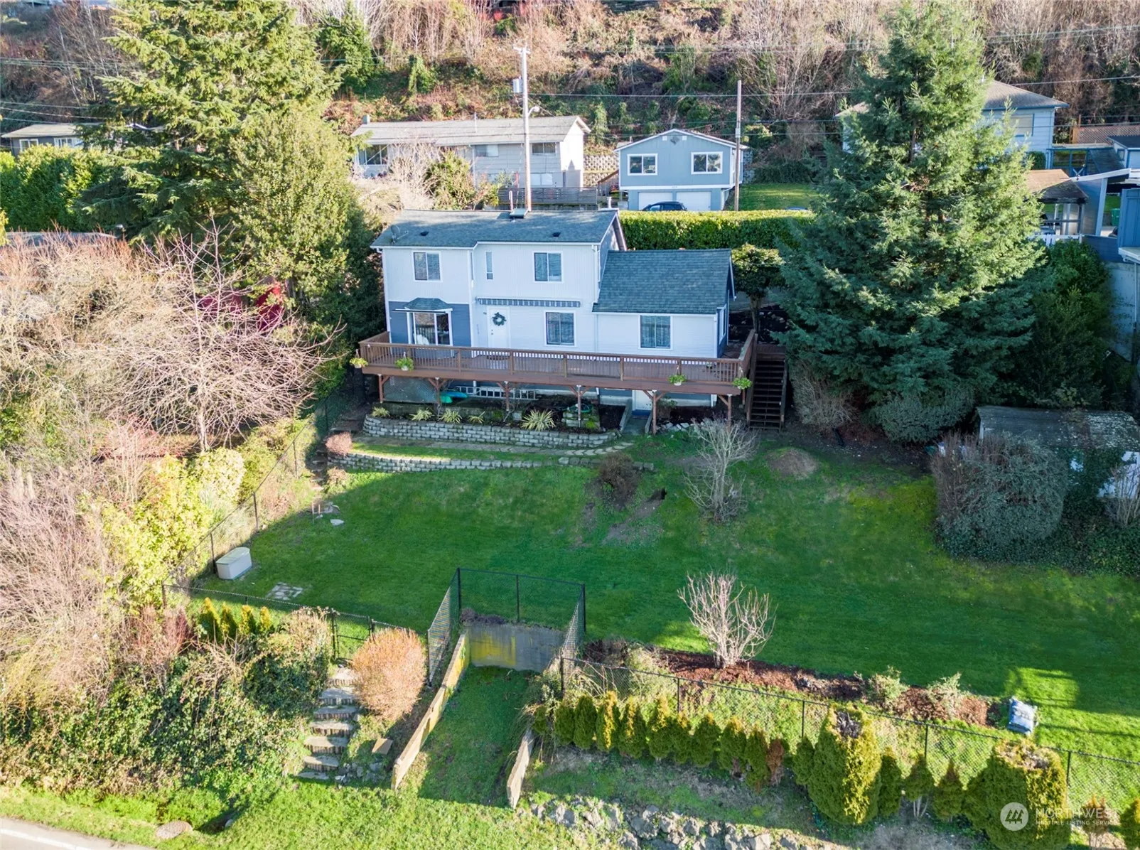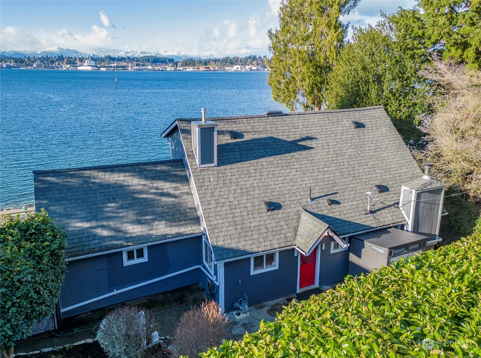 Picturesque two-story home with full basement on the beautiful Puget Sound waterfront. Unobstructed water views with stunning snow topped mountains, evening sunsets and abundant wildlife. This home boasts 1 bed/1 bath on main level, 2 bed 3/4 bath on upper level, and bonus room, half bath, den/office and cheery light filled laundry with ample storage and access to a Chain Link Fenced Yard with ample grass and inground sprinkler system layered with tiered garden beds. The lot boasts two city lots, parking for 3-4 vehicles. Newer roof, natural gas, city sewer and water. Step out onto the new composite deck overlooking Sinclair Inlet perfect for boating and fishing. Close to transit and ferries on the nearby boardwalk to downtown port orchard.