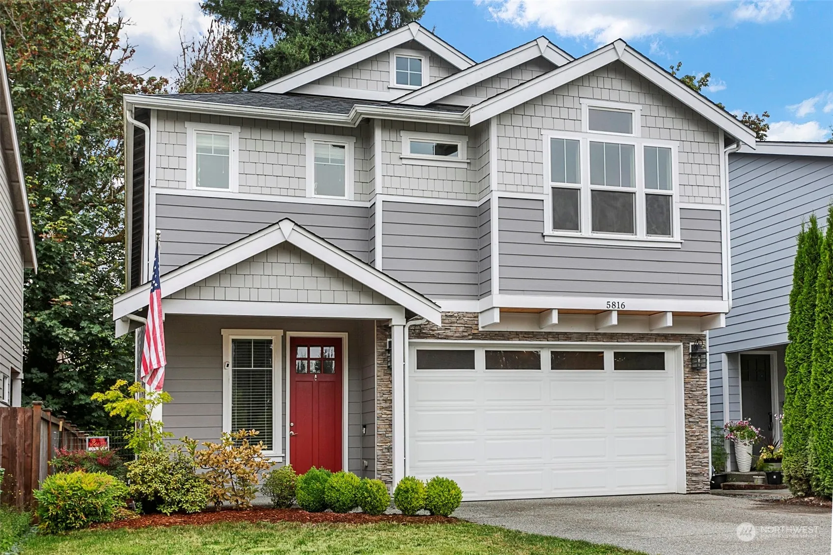 Discover serene living in this spacious 4 bedroom 3 bathroom home nestled in a quiet cul-de-sac backed up to a lush forested greenbelt for ultimate privacy. This home features tall vaulted ceilings and an open concept on the main level creating an airy and open ambiance. Head upstairs and find your oversized primary bedroom with an ensuite for convenience and a luxury feel with a large tub perfect for relaxing evenings. This home keeps giving with its beautiful yard backed up to a greenbelt and the longest driveway in the neighborhood giving you ample parking! Experience the best of both nature and modern living in this conveniently located Marysville gem!