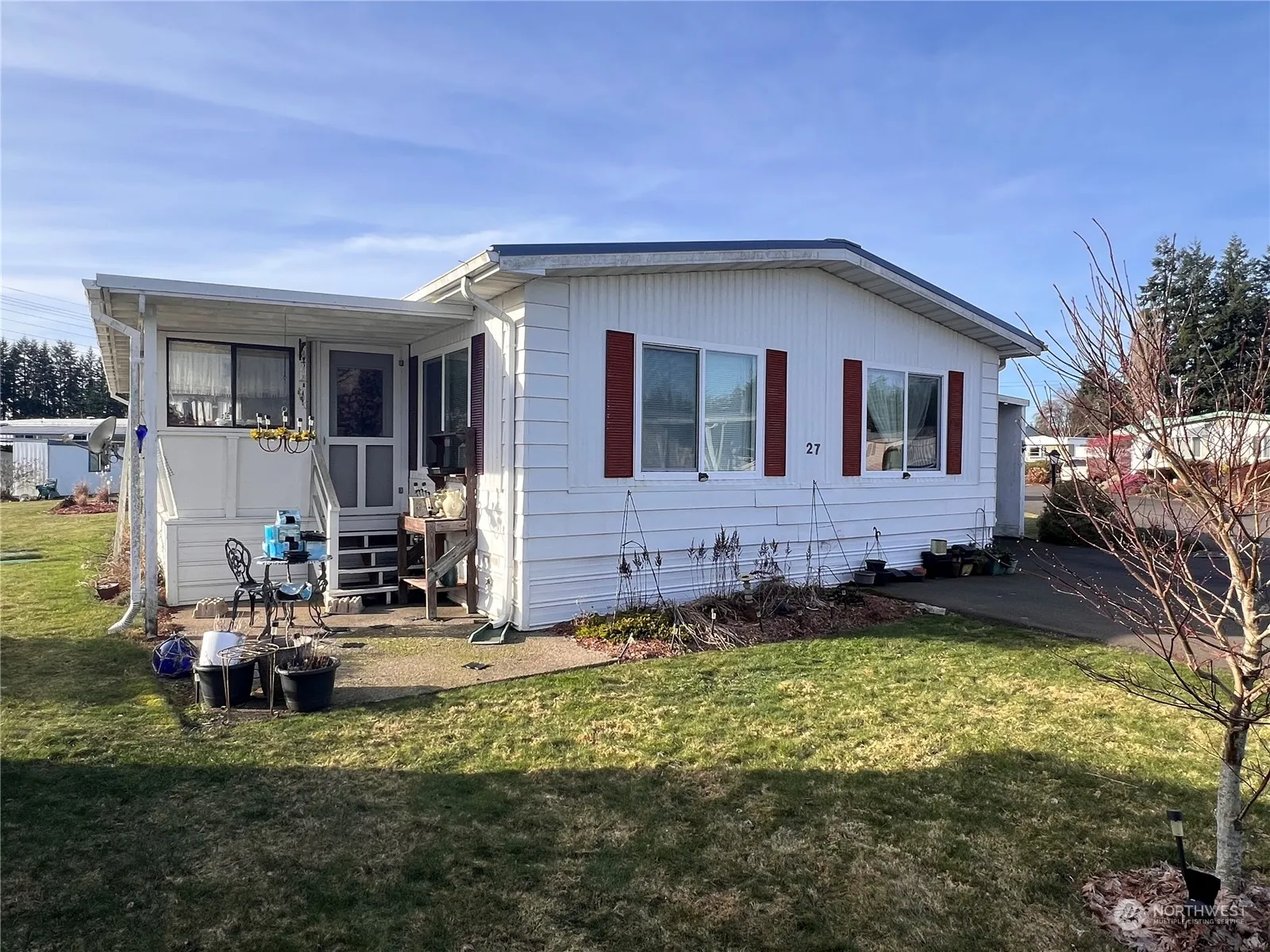 Nice double wide manufactured home located in Country Estates 55+ park. This home has 2 Bedrooms, 1.75 Bathrooms and sits at just under 1,200 square ft. Home features nice size living with dining space w/ built in cabinets and family room. Kitchen has updated flooring and sink and plenty of cupboards and counter space. Primary bedroom has attached bathroom complete with a step in shower. Bright and spacious sunroom addition, not included in sq. footage can be used for crafting, entertaining or extra storage. Outside you will find a large 2 car covered carport along with extra storage and an accessible ramp. Metal roof is approx. 8 years old. Country Estates is well managed and beautifully maintained. W/S/G included. Take a look!