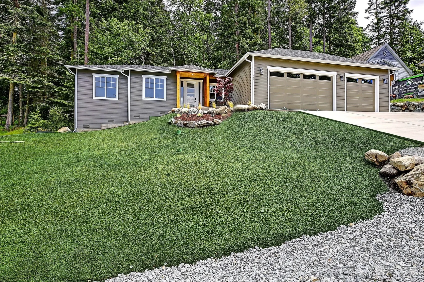 New Construction in Sunset West, a consistent and quiet community on the north end of beautiful Camano Island. Single level home with three car garage and covered back patio. Vaulted ceiling in open living, fantastic kitchen, an expansive island and beautiful upscale finishes throughout. Great mudroom and oversize pantry. Nestled in the trees, enjoy nature from your quiet patio. Heat pump, tankless hot water, and solar panels. Conveniently located on the Island for easy access to amenities, off/on access and nearby beach access to the Island lifestyle. Buy with confidence from a local Builder known for Quality, Cleanliness, Attention to detail and backed by a Builders Warranty. Pictures are indicative of intended finishes, not exact.