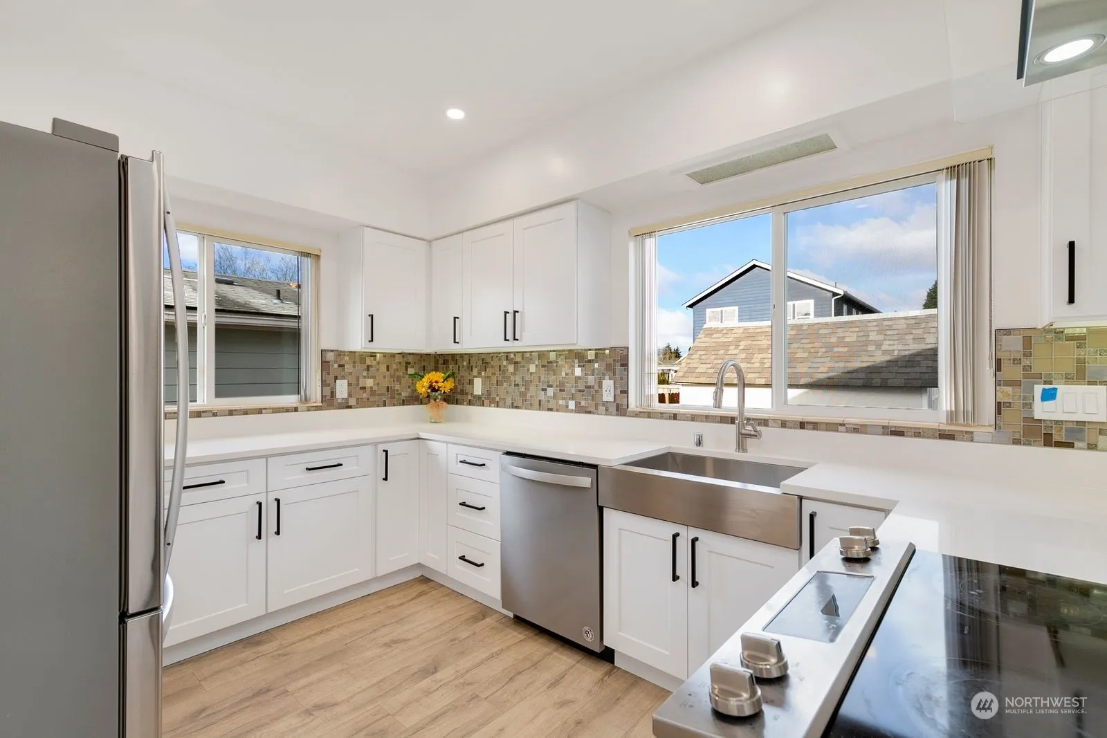 Seller will carry contract, consider lease to own. Immaculate craftsman, remodeled w/high end features & finish throughout. Main level:spacious sun splashed living room, bright well designed kitchen w/stainless appliances, farm sink, new cabinets, quartz counters, customizable under cabinet lighting & more! 2 bdrms w/generous closets, bthrm with quartz vanity/sink, tile back splash. Versatile lower level has oversized family room, 2 bdrms, roomy 3/4 bath w/ blue tooth lighting & speakers, den/office, and outside access to rear yard, shed and alley access. The new fixtures, flooring, appliances, windows, blinds, paint & custom touches show a thoughtful, committment to unmatched quality for carefree, secure, comfortable living for many years.