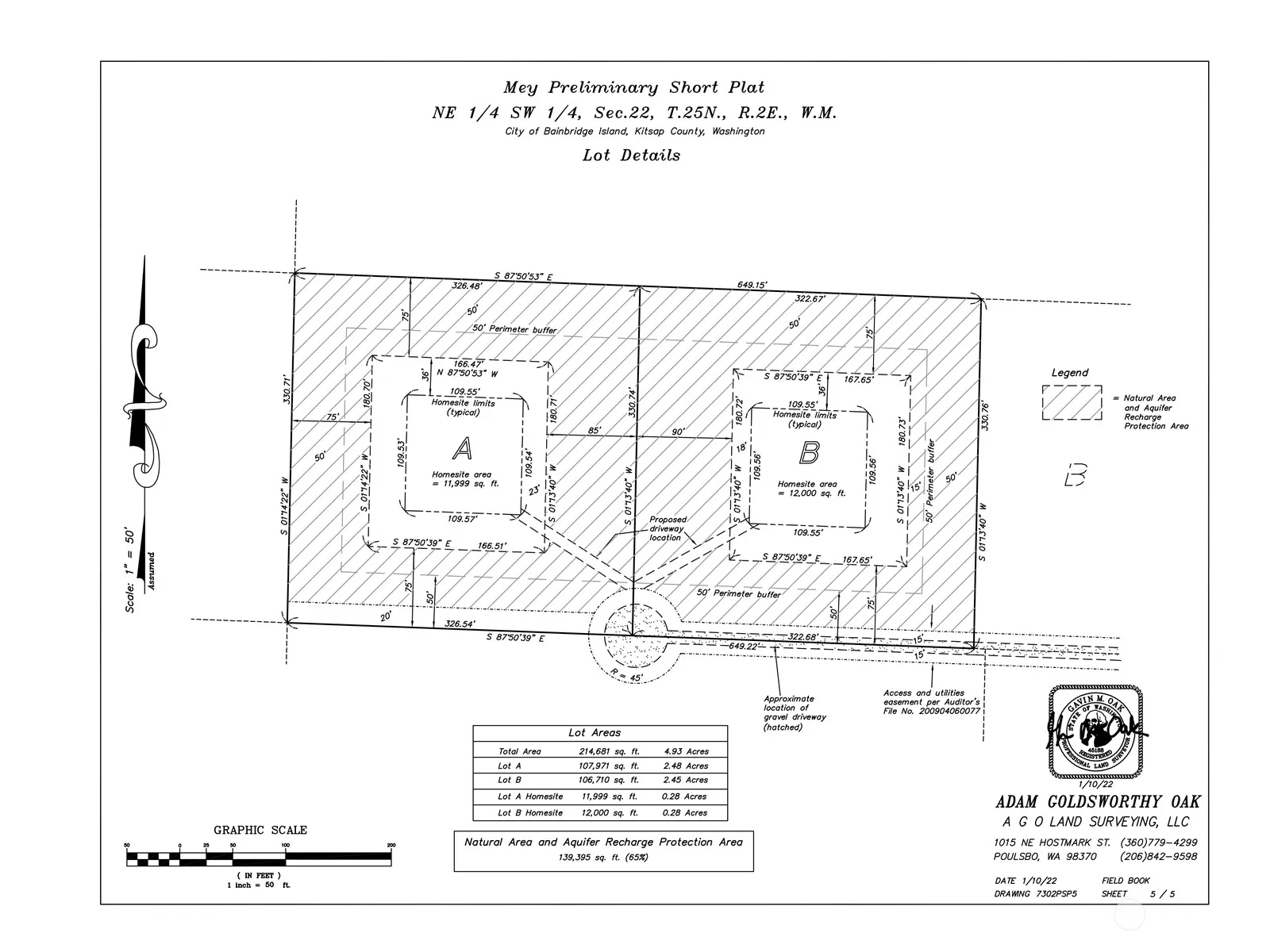 Great Island Location. Ready for your custom build, this lot offers easy topography nestled down private Fox Den Lane. No wetland buffers or critical areas to contend with here (ARPA guidelines still apply)! With an access driveway already in place you’ll be able to get right to work. Pick your perfect homesite within this classic Northwest landscape that won’t make you choose between privacy and sunshine. Moments from Winslow, schools and ferry for easy all-island access. Wooded lots all around