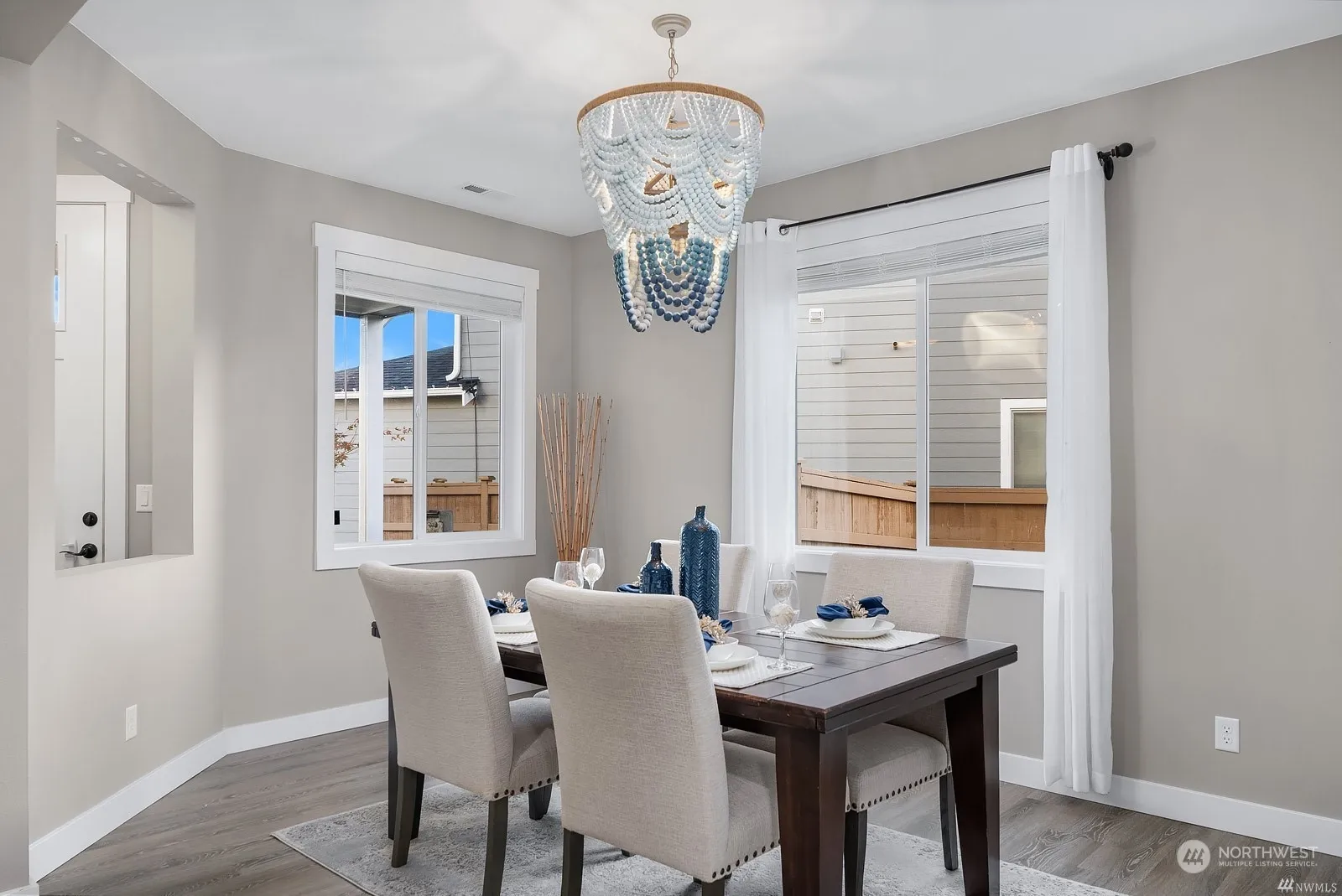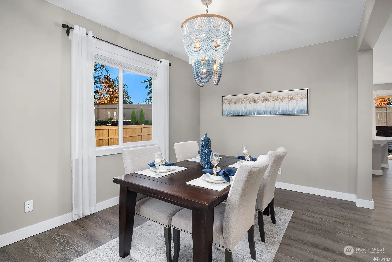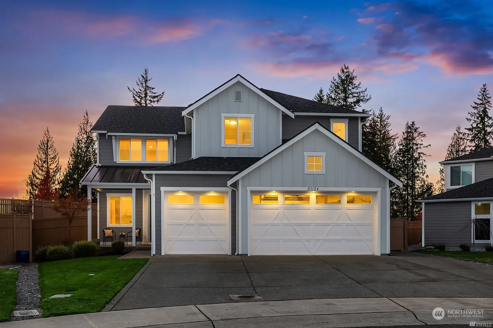 Honey stop the car!Beautiful Richmond American resale in Elk Run. Better than new! This Seth plan, built in 2021, sits proud back in the middle of a culdesac. Picture perfect views of Mt Rainier from sunrise to sunset are framed in the windows.There is space for everyone with 5 total bedrooms, great room, separate dining room and a loft upstairs. Main floor features a bedroom w/ walk in closet along with a beautiful personalized gourmet kitchen! Upstairs features 3 other bedrooms plus the Primary bedroom with Spa like large shower and not one BUT 2 separate walk in closets! The back yard has been professionally landscaped w/stone patio and lighting in the retaining wall.Owner put in a high efficient heat pump as well.A MUST SEE! No sign up.