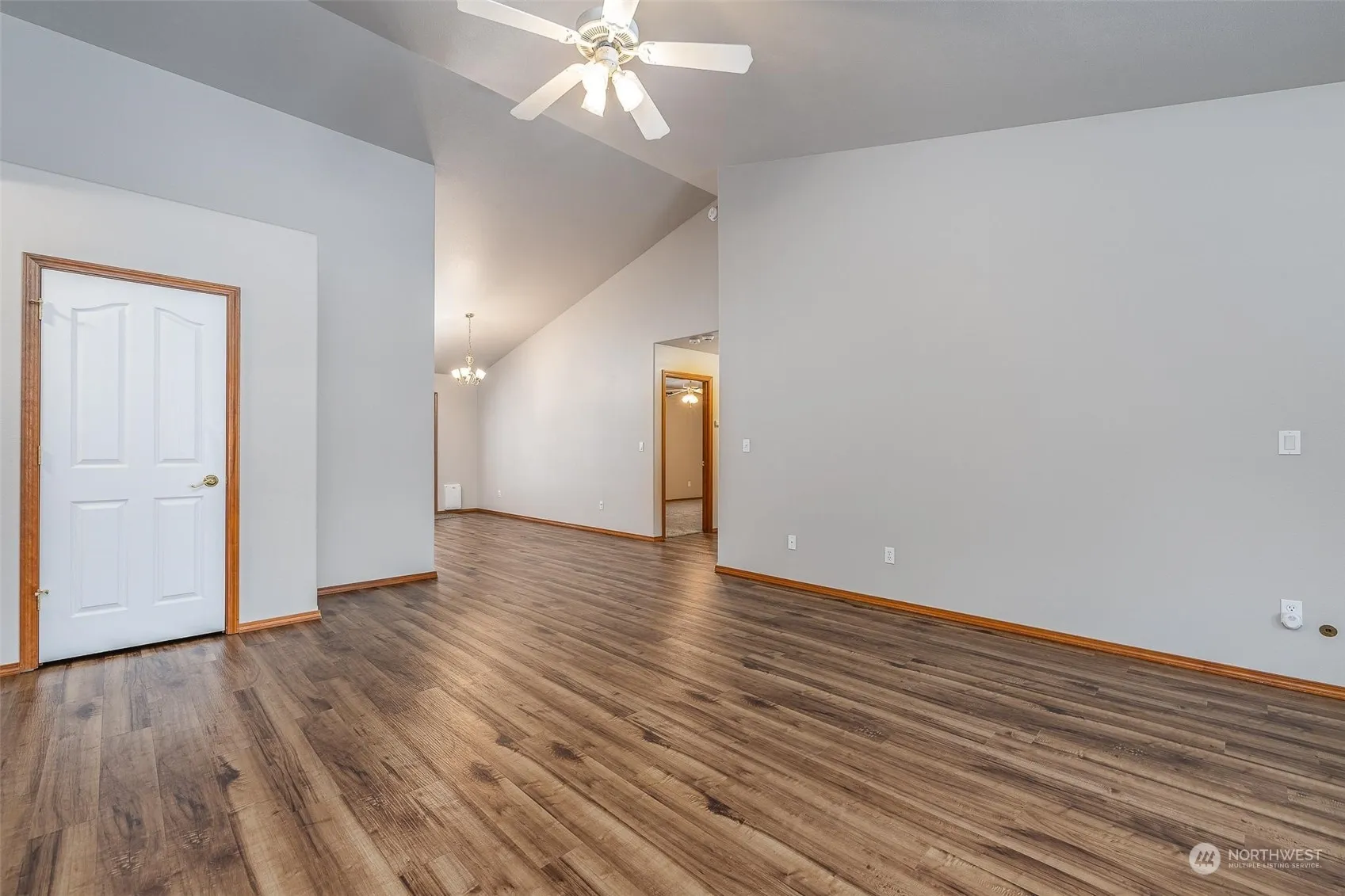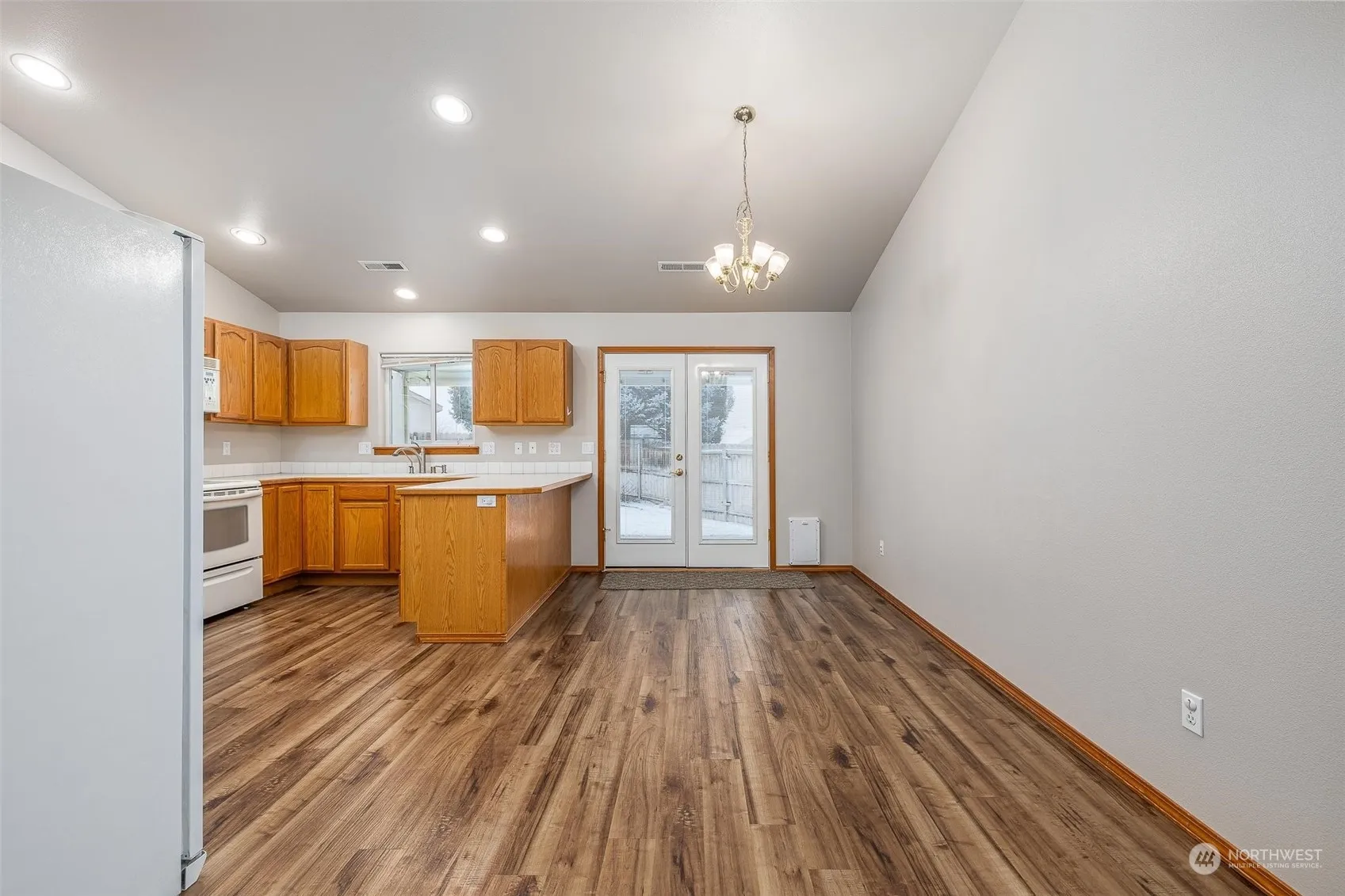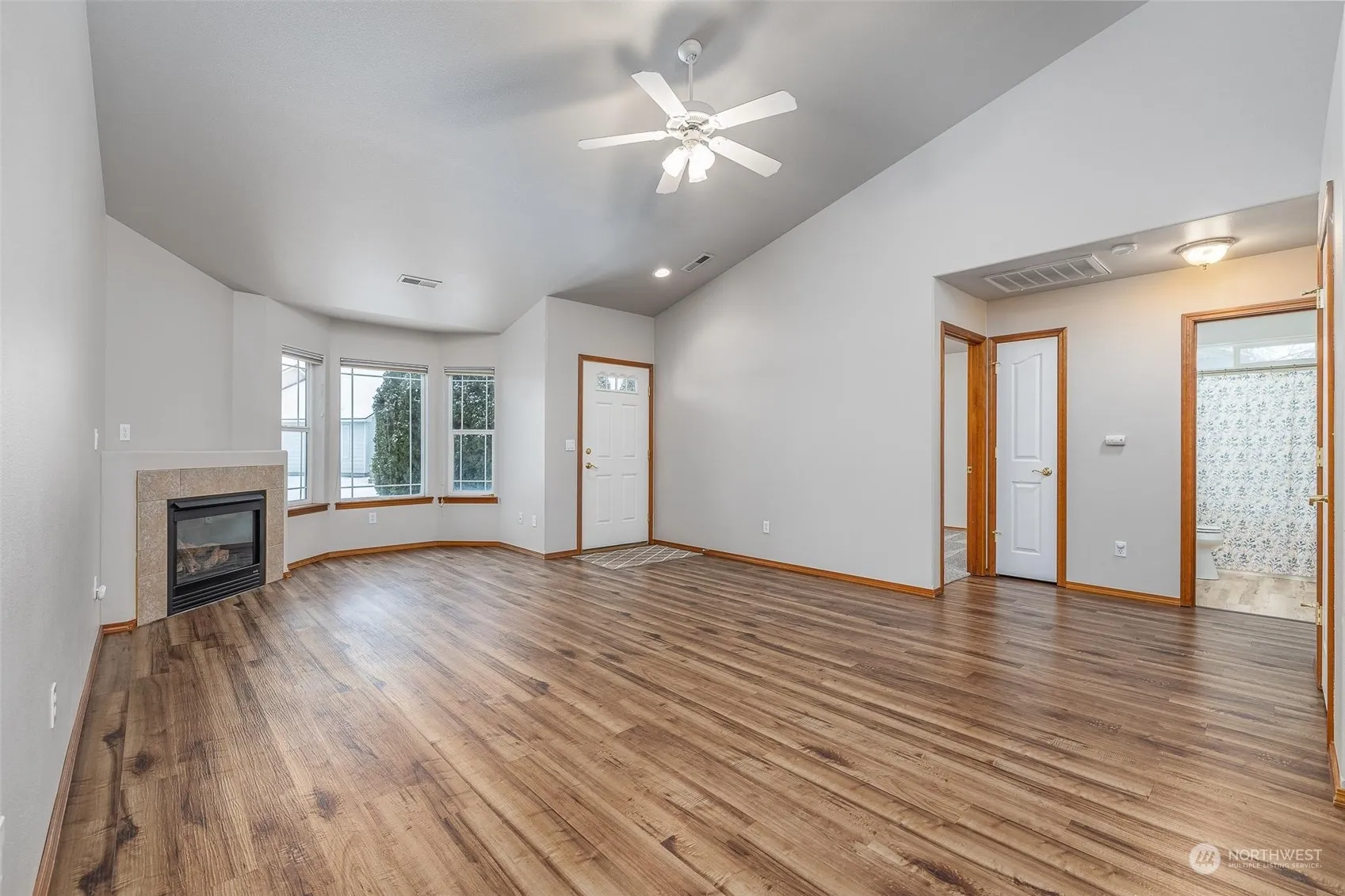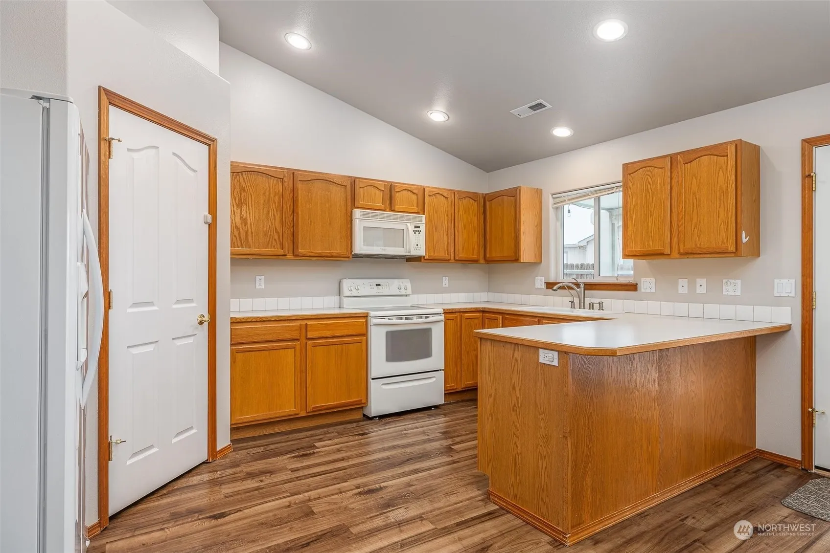 Super-clean and well-kept 3 bedroom rambler in peaceful neighborhood! All appliances included! Lots of counterspace in the bright and cheery kitchen, breakfast bar, and pantry. New LVP flooring through main living areas and new carpet in bedrooms. New interior paint, primary bathroom updated with vanity and shiplap. Vaulted ceilings, gas fireplace in living room, bay windows, water softener, easy to live in split-bedroom floor plan. Attic recently upgraded with additional insulation. Fenced back yard has plenty of space, raised garden area, oversized and private covered back patio.