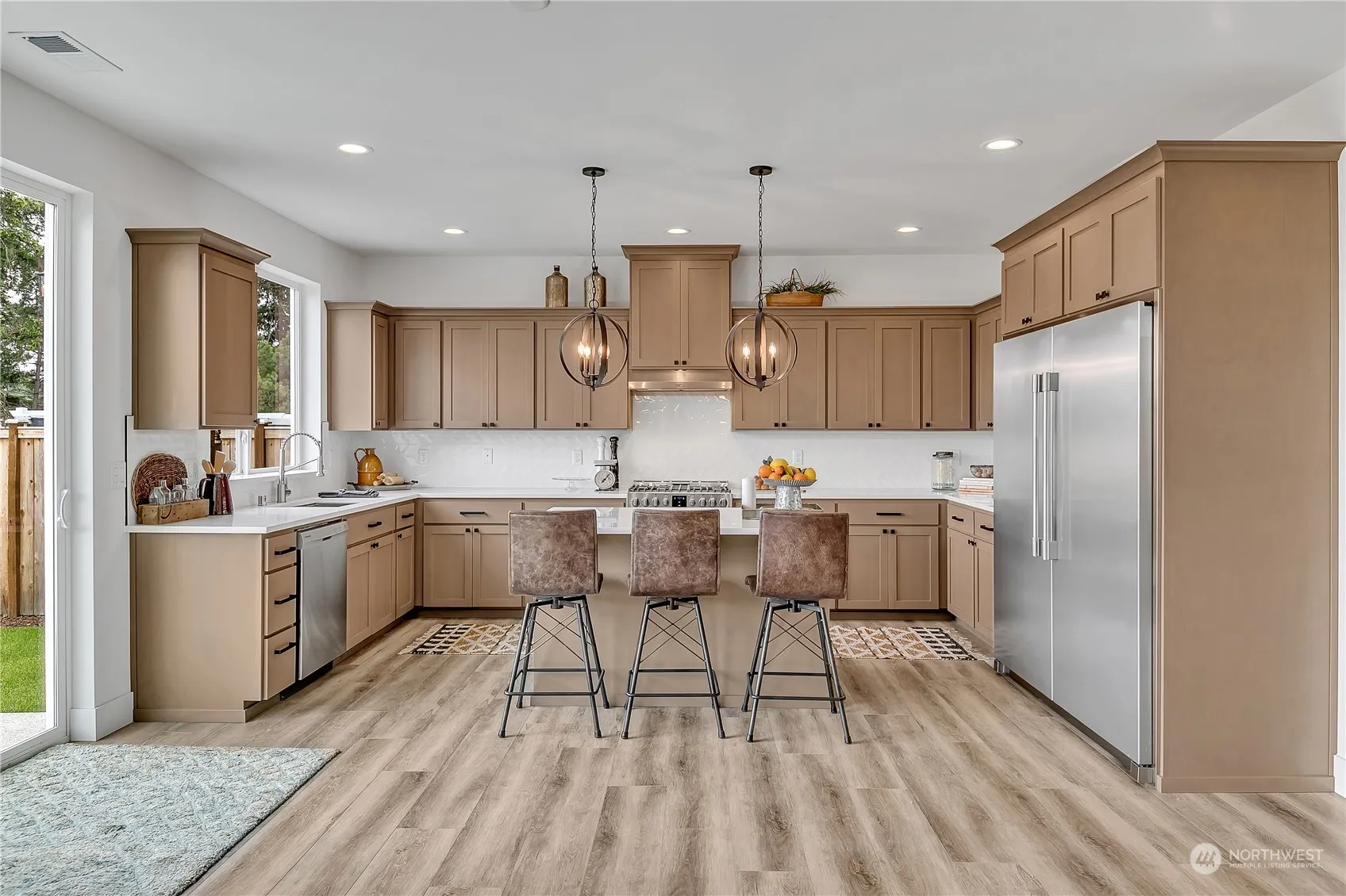 MOVE-IN READY! Welcome to HC Homes’ community of Holland Highlands! A quaint new community in Spanaway. This spacious 3,044 SQ FT home boasts beautiful luxury plank vinyl throughout the entry, kitchen, dining & family room. Gorgeous kitchen w/ custom built cabinets, large island & stainless-steel appliances including a deluxe refrigerator/freezer combo. The den/office & a 1/2 bathroom are conveniently located on the main floor. Spacious primary suite w/ 2 walk-in closets & connected spa-like bathroom w/ free standing tub, dual vanities & private water closet. Large bonus room upstairs, perfect for entertaining! Other features include front & backyard landscaping w/ fencing, a heat pump & 3-car garage.