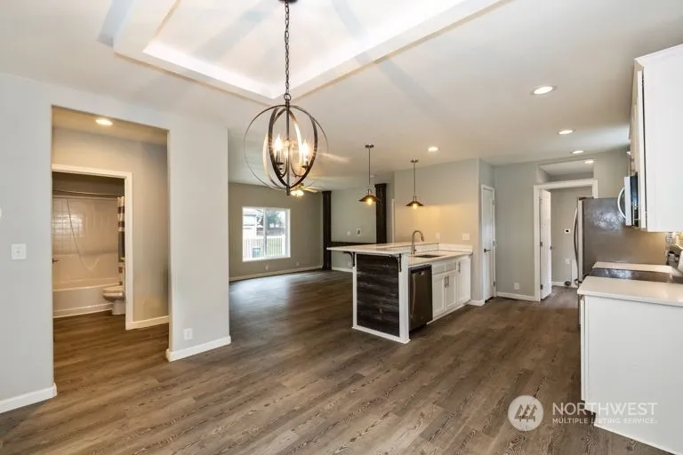 Beautifully upgraded 3bd/2ba home located in the Whispering Woods community. You won’t find another stunning custom designed home on the market for this price! You will love the huge 25X10 trex deck with lifetime warranty, great for summer cookouts. Amazing 8.5 ft ceilings make the space feel voluminous! You will feel the high end LVP flooring as you slip off your shoes. Look straight ahead at the gleaming designer kitchen robust with tile backsplash, hand crafted quartz countertops, and high-end S/S appliances. Large primary bdrm suite w/ spacious walk-in-closet, private bath with dbl vanity w/quartz top, and large fully tiled walk-in shower! 20×20 2-Car detached garage. Fully digitized Nest HVAC with Central AC! This is a must see!
