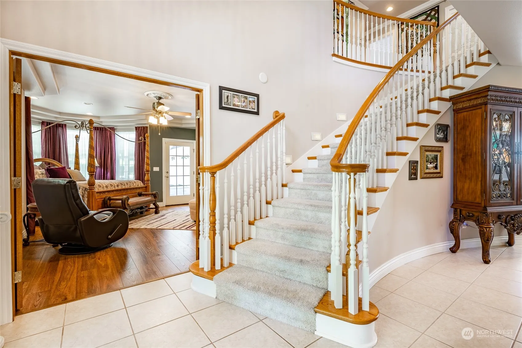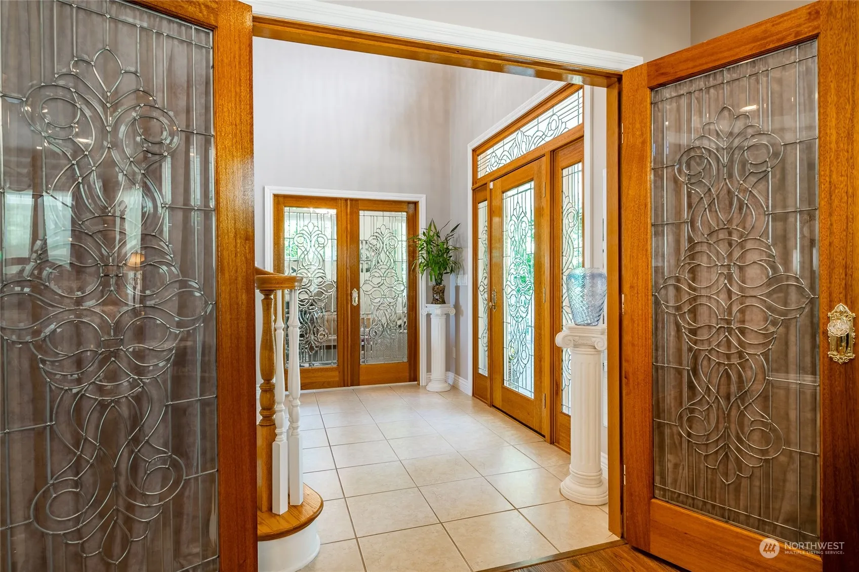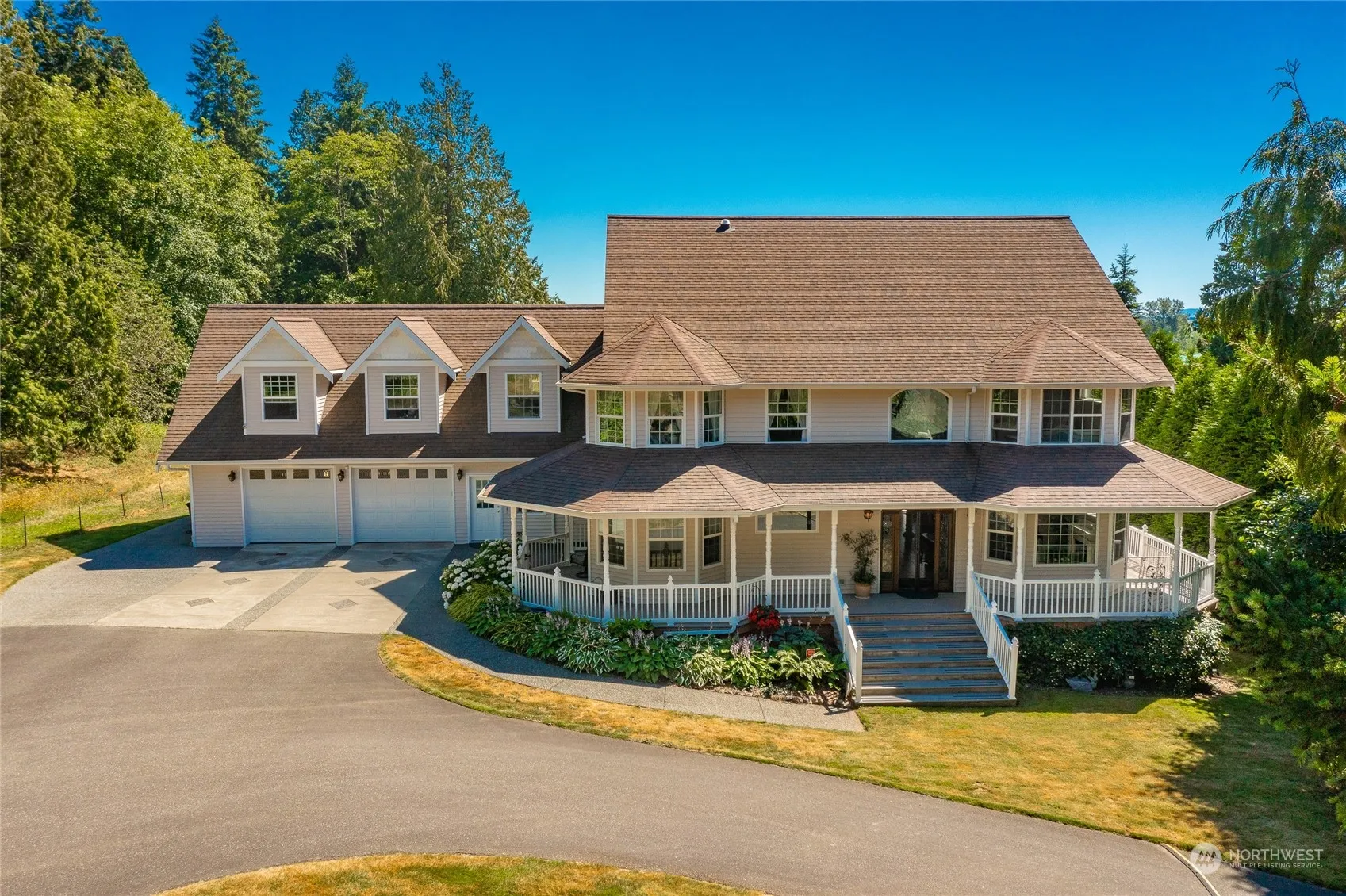 Enjoy the “out of town” feel without the “out of town” hassle, in this custom built home perfectly situated on 1.6 acres & ready for enjoyment. Just minutes from I-5 & the Canadian border. Zero step entry greets you with custom glass doors & vaulted ceiling. Main floor has primary bed & bath, parlor room, kitchen/dining space, plus French doors that open to enormous Trex deck that wraps around nearly 3/4 of the home. Second story has 4 beds + 2 full baths with large hobby/craft room that connects to home office with private entry. Bonus room is located on the 3rd floor, complete with dual closets and peak-a-boo water view. Basement is partially finished, great for storage or more living space. Property includes RV parking & hook-ups.