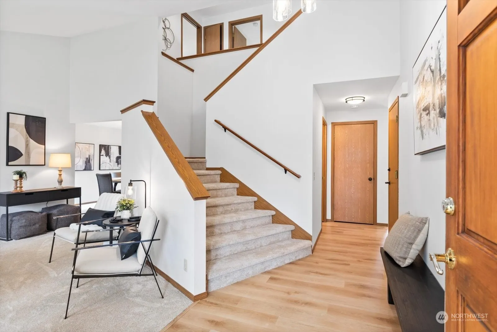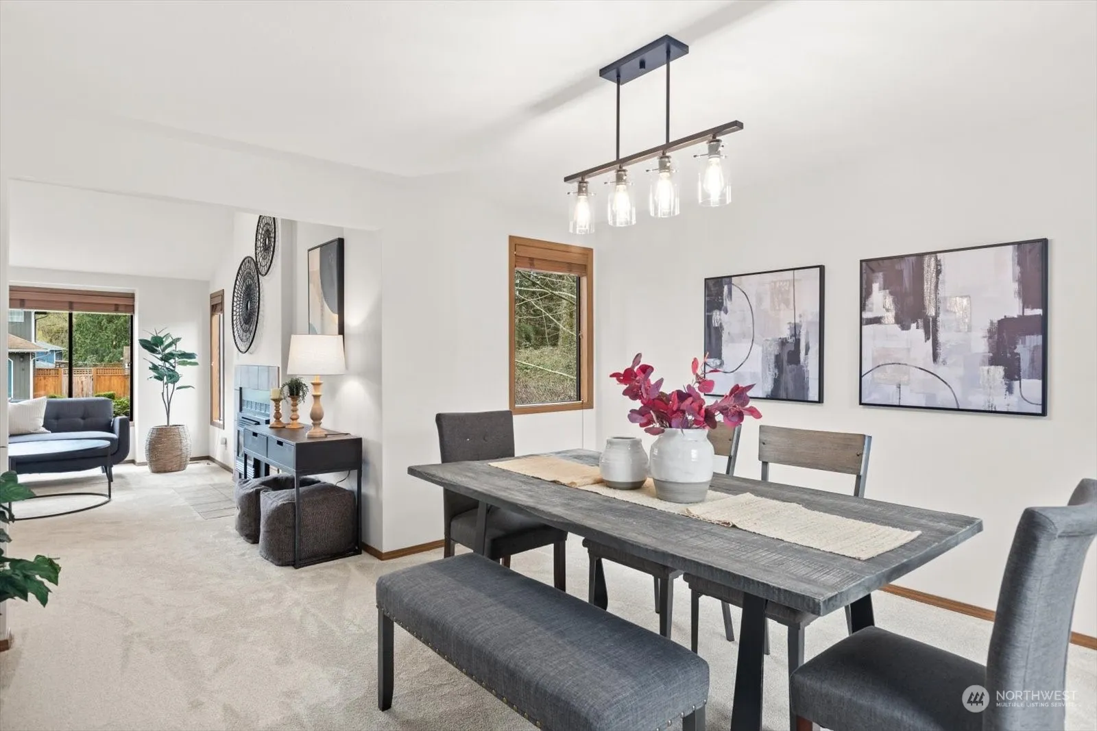Prepare to be enchanted by this architecturally pleasing 3-bdrm, 2.5-bath residence. From the fresh paint and new flooring throughout, featuring LVP and carpet, to the vaulted ceilings that enhance the feeling of openness, this home is designed to impress. Enjoy the conveniently located large pantry & laundry room off the kitchen with SS appliances plus access to an attached 2-car garage. Outside, the fully fenced flat yard offers a private oasis, while the south-facing orientation ensures abundant natural light. And with a large entertainment-style deck, entertaining guests or simply enjoying the serene surroundings becomes effortless. Positioned on a quiet dead-end street, don’t miss the opportunity to make this your new home.