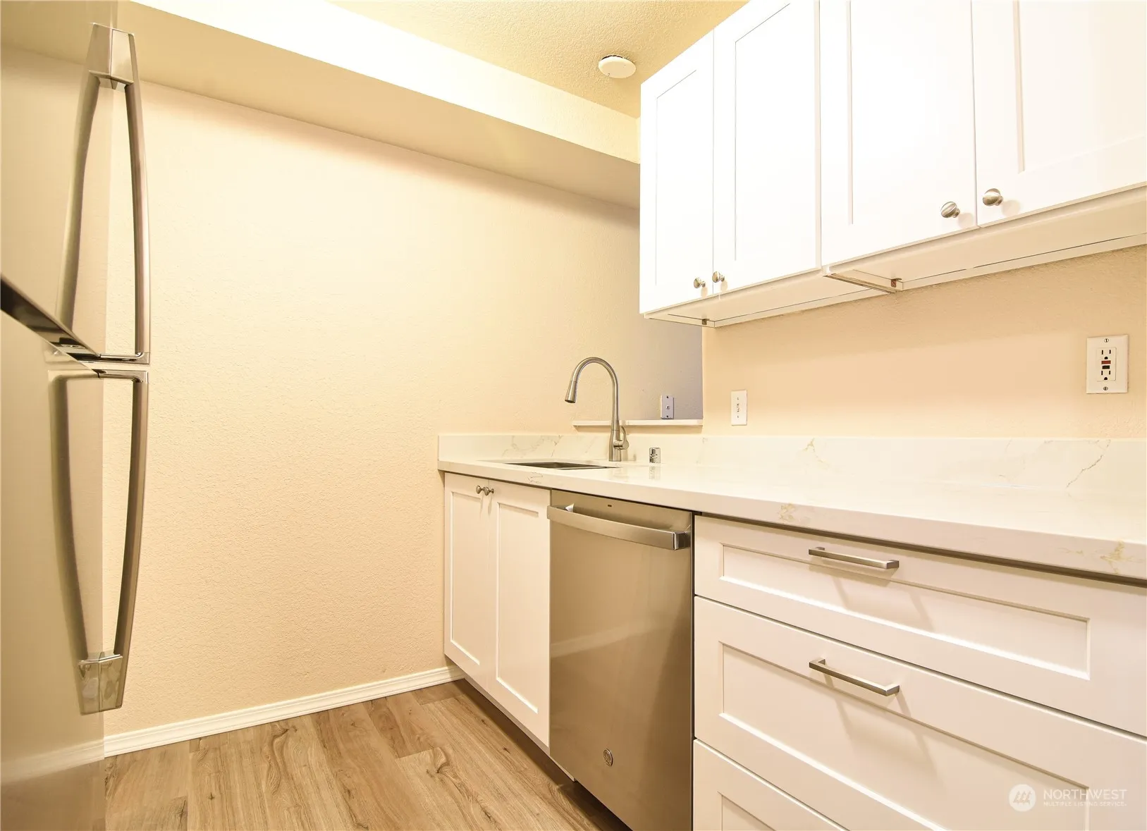 Light and bright, newly remodeled unit, located at Mill Creek Country Club Estates. Two good sized bedrooms, two fully remodeled full bathrooms. Kitchen has been fully remodeled with new countertops, cabinets, fixtures, & appliances. This second floor unit has a wood-burning fireplace, private covered deck off the living room with a storage closet, and brand new full-size washer and dryer in their own separate laundry room. Complex has an outdoor pool, exercise room and access to the Mill Creek nature trail system. Building has both elevator and stair access with covered parking garage below.