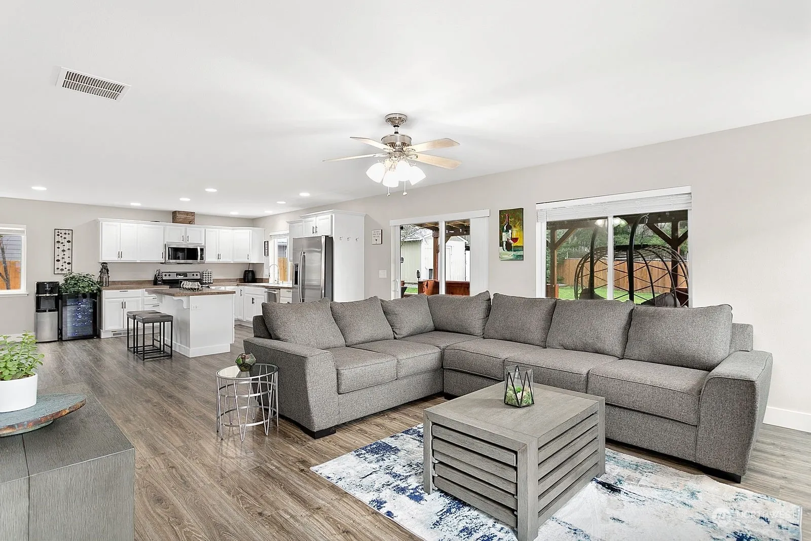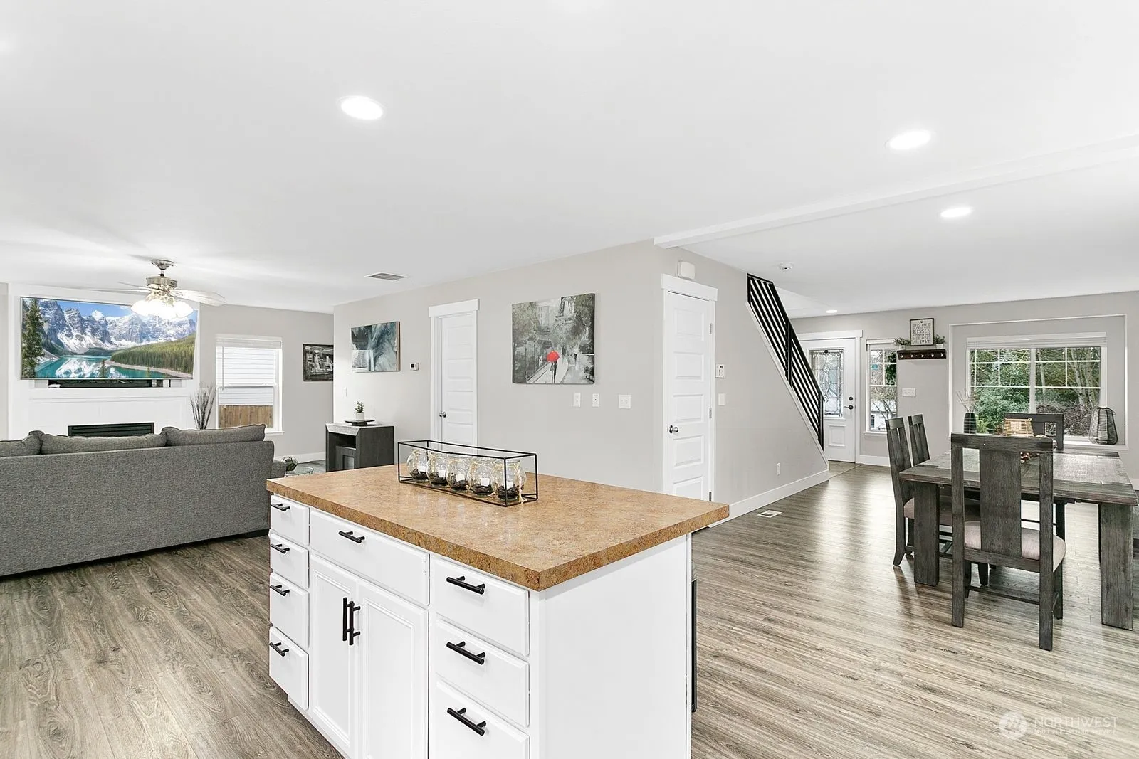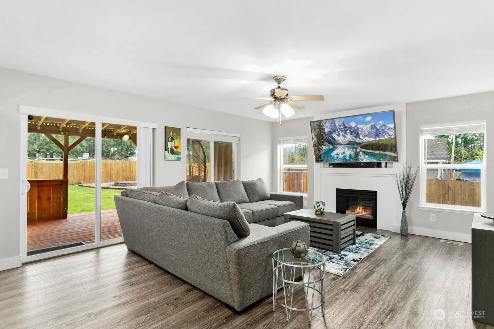Nestled on a peaceful cul-de-sac street, this charming home offers everything you desire, plus stunning views of Mt. Rainier! With its dazzling open-concept living & kitchen area, you’ll be captivated by a generous entertainment space, cozy fireplace and modern touches. Updates include: fresh paint, trim & flooring! Step into the fully fenced backyard featuring a covered patio, fire pit, shed w/power and a relaxing hot tub. Upstairs is sure to impress, boasting a large primary bedroom, walk-in closet, two additional sizable bedrooms and a large bonus room w/closet. Heat pump provides comfort all year long including breezy, cool A/C. A quick drive into town, no HOA and RV parking. Situated perfectly for balance of convenience & tranquility!