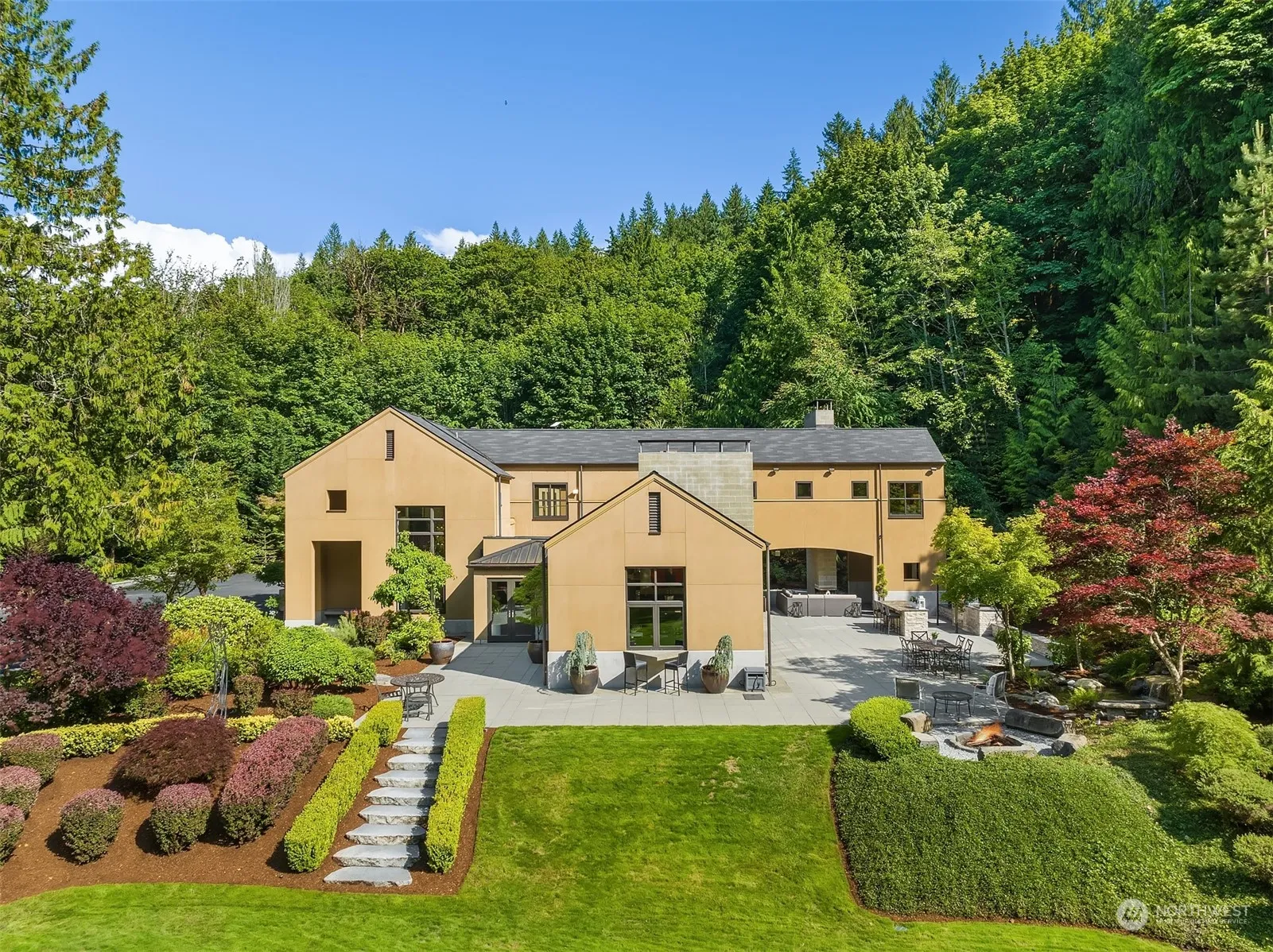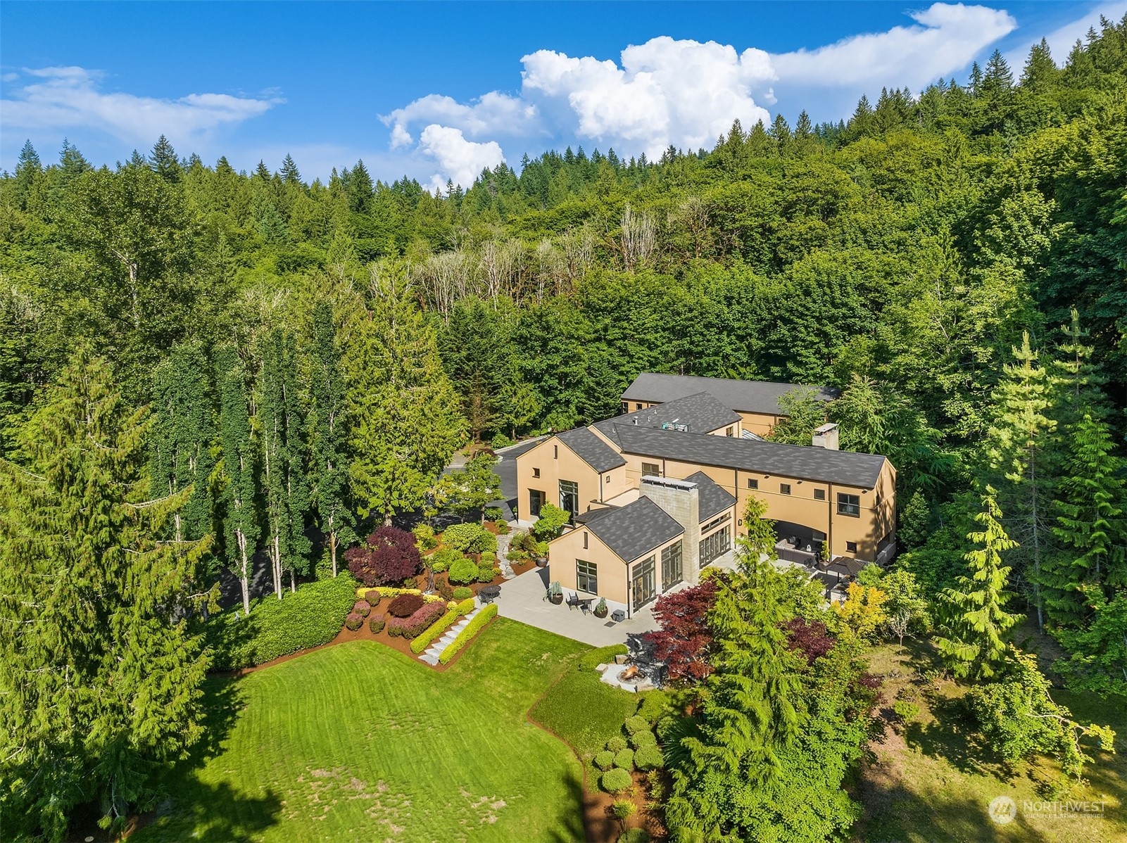 Experience the exquisite blend of award-winning architecture amidst 20 acres of serene tranquility. Welcome to Black Nugget Estate. Tucked away, but only minutes from I90. Secluded sanctuary offering the perfect blend of privacy and convenience. Indulge in the epitome of comfort and elegance with meticulously crafted details, boasting 5 spacious bedrooms, gourmet Chef’s kitchen, 5-car heated garage, and luxurious Primary Suite. Add’l 3700 sq. ft. bldg. features sport court, expansive gym and fully-equipped kitchen. The possibilities for recreation, entertaining and relaxation are endless. Fenced/Gated property is designed to run “off grid” for weeks or months at a time. Experience the ultimate retreat right here in the heart of Issaquah.