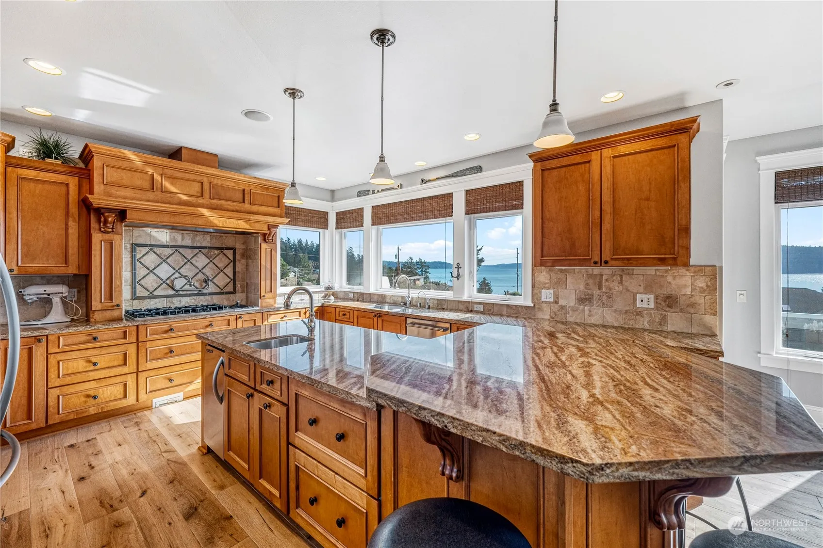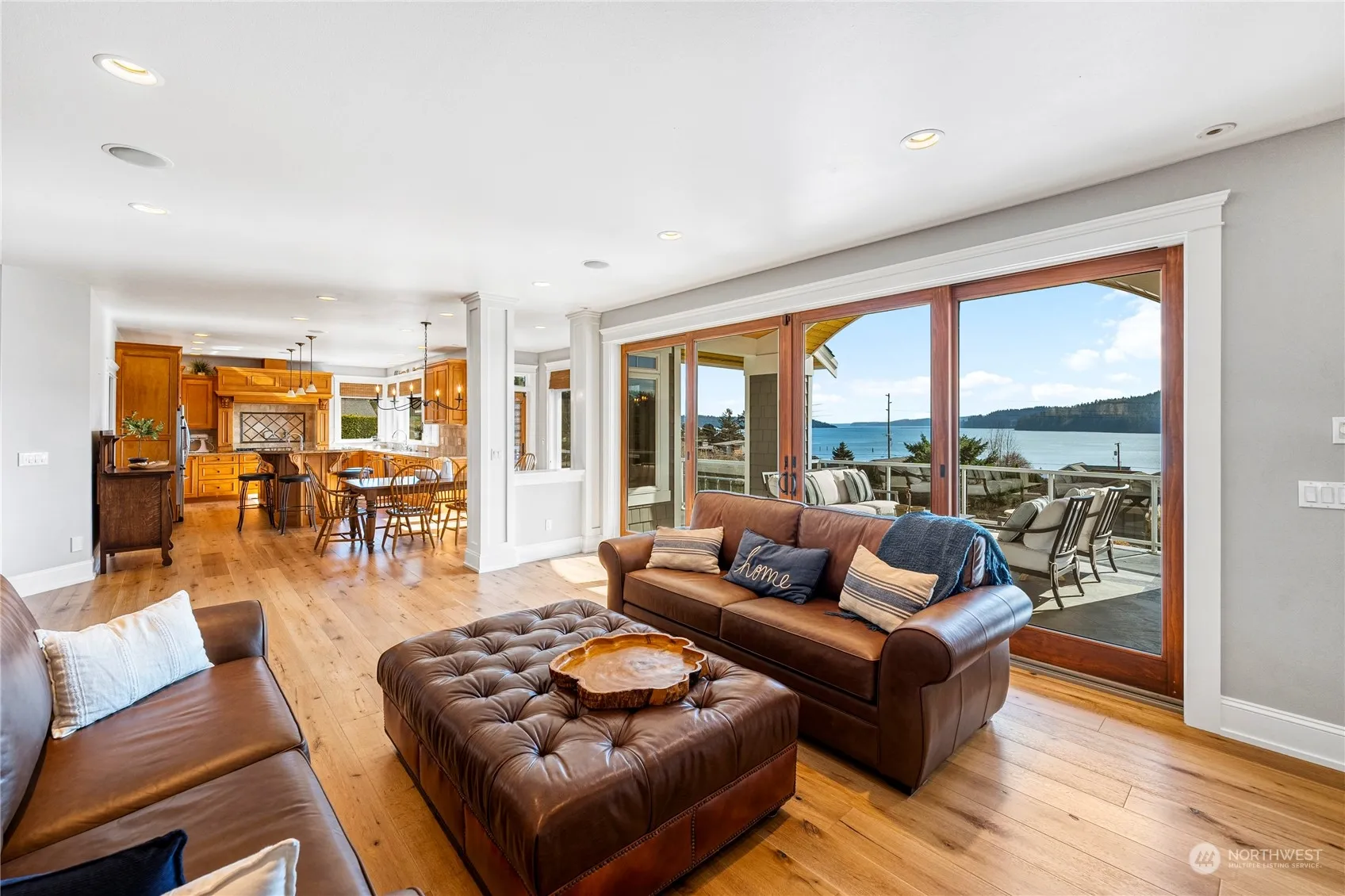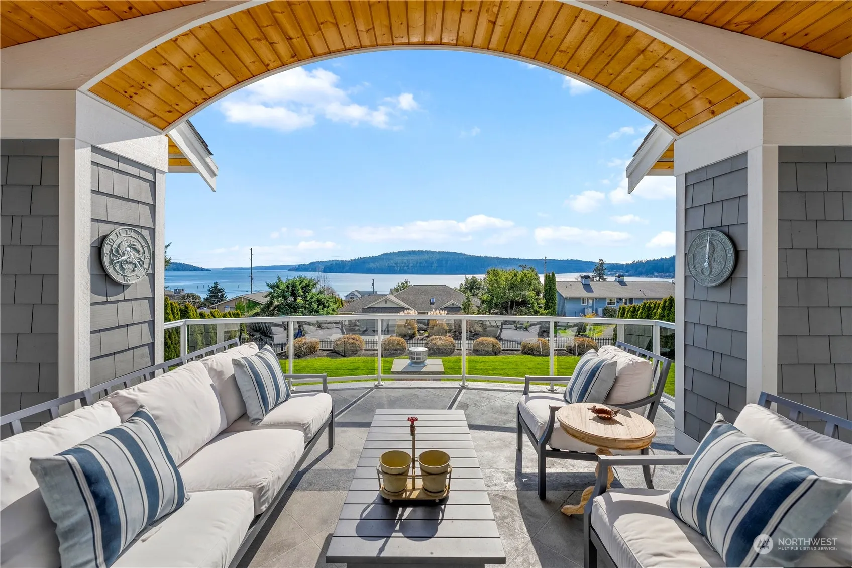 Spectacular view home near Dewey Beach, quality-built and finished in luxury. 5,576 square feet of meticulously maintained living space on a 16,500sf lot. Skylights, wood floors, gourmet kitchen, floor to ceiling windows with deck for entertaining. Breathtaking saltwater views of Skagit Bay and the Olympic Mountains. Large primary suite with w/d in the walk-in closet. Lots of outdoor living features in the large private yard. Dedicated media room with theatre seating. Efficient radiant and forced air heating system. Elegant interior lighting. Large living room on the main level and another downstairs, flowing out onto the covered paver patio with outdoor gas fireplace and hot tub. Craft room, office, bunk room – see special features list.