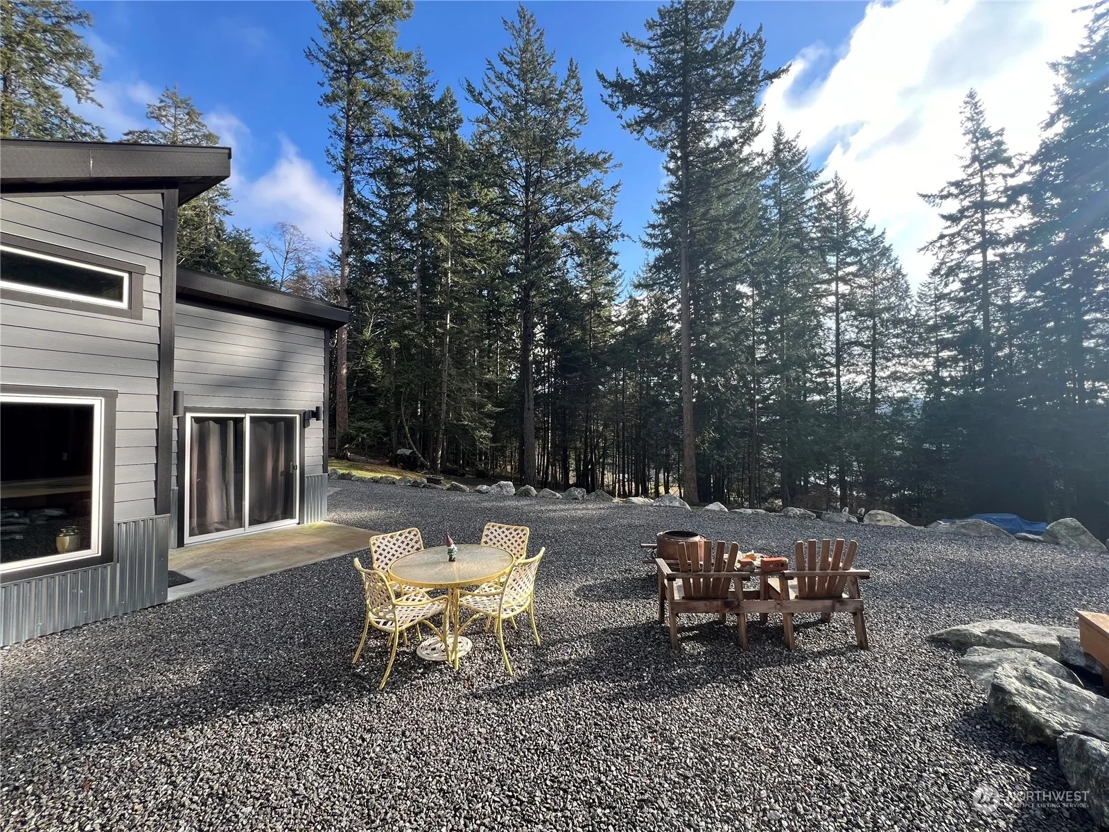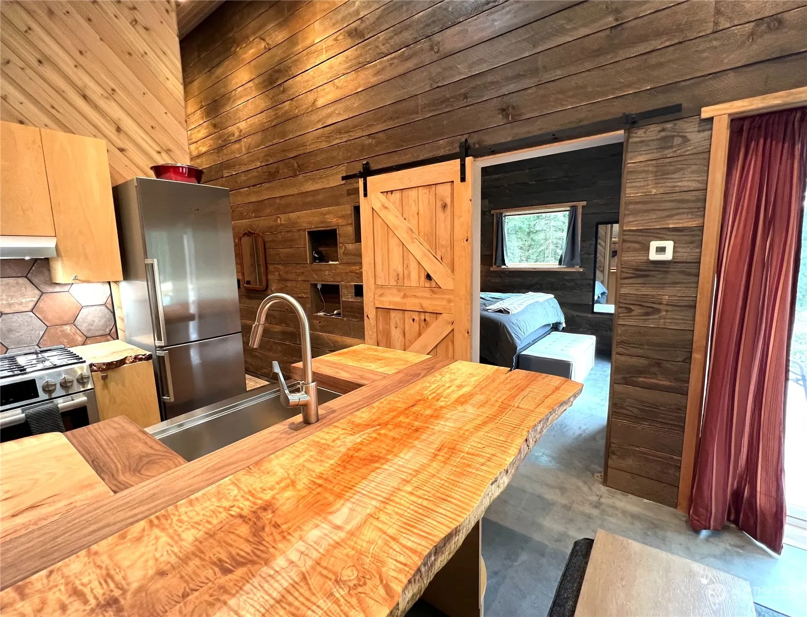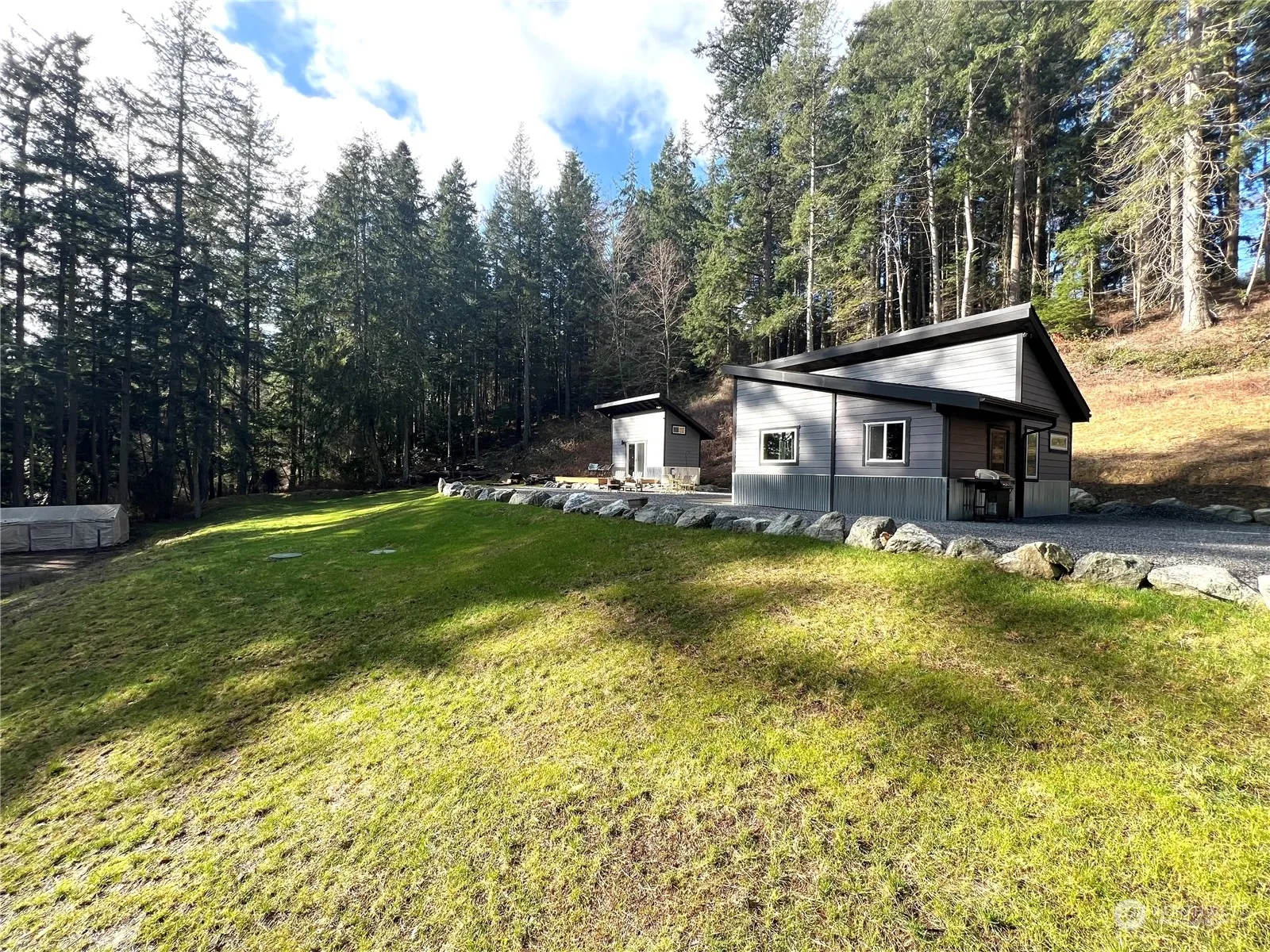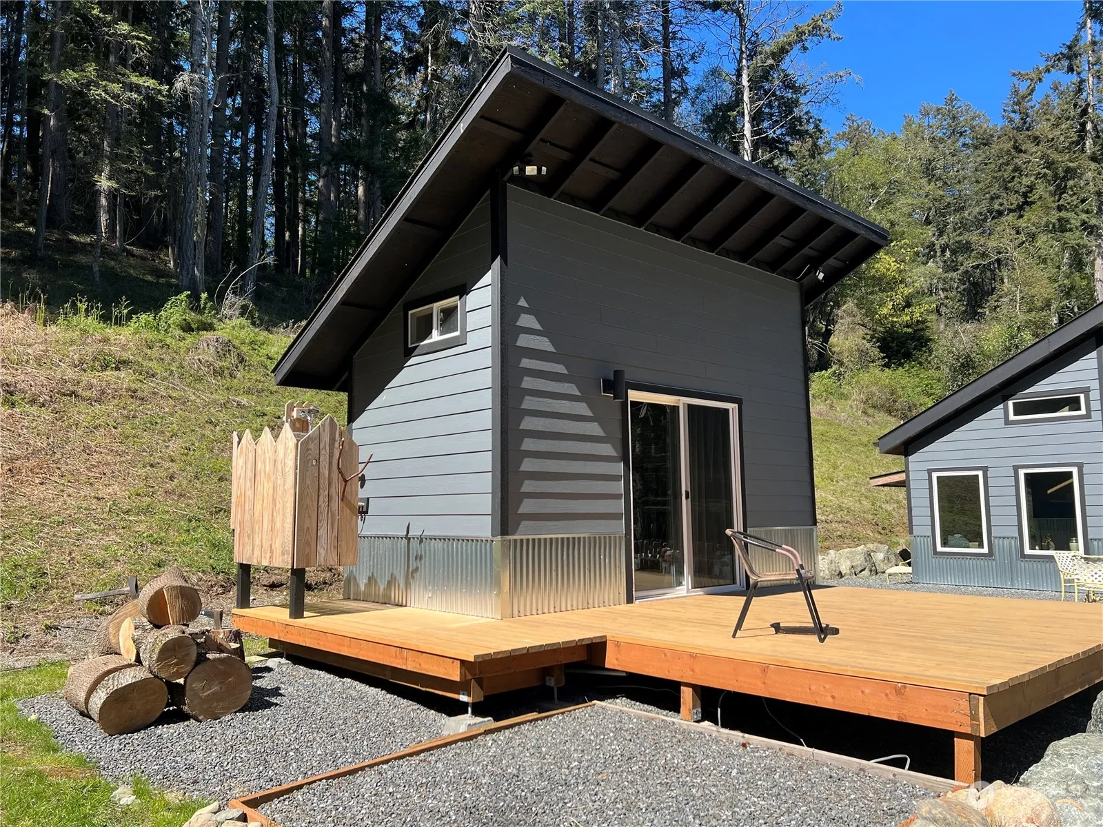 Offered is a well made & constructed Deltec 2×6 panelized double sil kit Main Home w/ detached Studio w/ washer/dryer & 1/2 bath + sleeping loft & outside shower on 2.4 acres minutes to town. Semi-rough sawn interior siding, radiant floor heat, cathedral ceilings, custom curly maple counters + large walk-in tile shower are just of the few of the high-end features. Galvanized metal w/ cement board siding make a durable exterior. High quality materials & construction make a comfortable minimalist home or quarters while you build. Infrastructure is here; private well, (4) bed septic installed, sheds, RV hookup areas, power & water trenched to necessary places. Garden space, patio areas, no HOA, easy access road. Seller wants to sell this year!