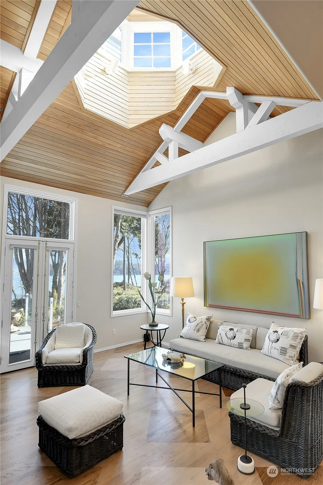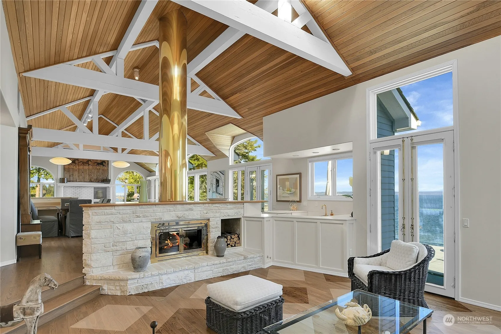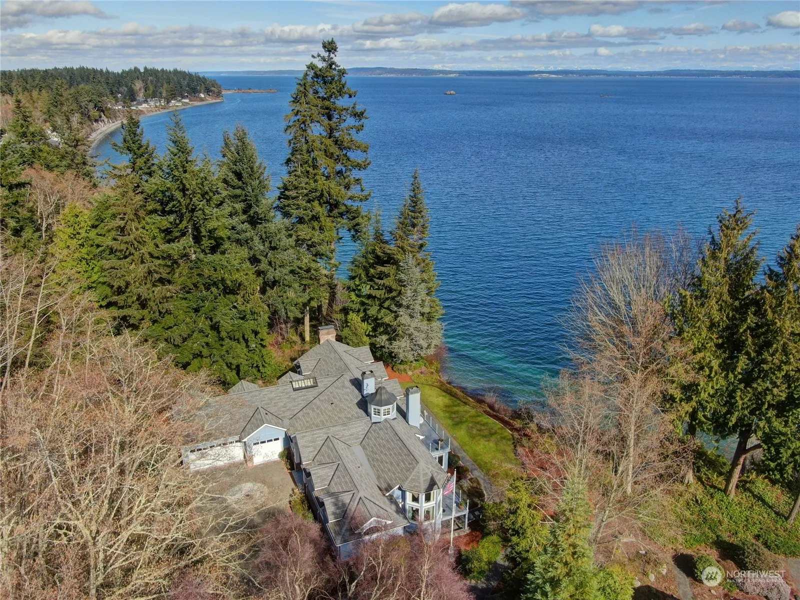 An exquisite waterfront hm in Port Ludlow, w/97′ of waterfront & stunning views of the Puget Sound & Cascades. Home offers an unparalleled vantage point to observe Orcas navigating the Sound amidst sailboats & ocean liners. Main living space is designed for entertaining & featrs a spacious gourmet kitchn w/new marble countertop, SubZero freezr & refrigr & othr high-end appls. Luxurious primary on the main, complete w/a featr-filled ba w/steam rm. Hm incl’s 2 guest suites on lower level, bunk rm w/3 bds, professional office, an AV rm, storage/game rm, shop, & hot tub. Has an oversized 3-car garg. & prem. water treatment system add to the appeal of this hm. Hm offers perfect blend of luxury, comfort & functionality in a breathtaking setting.