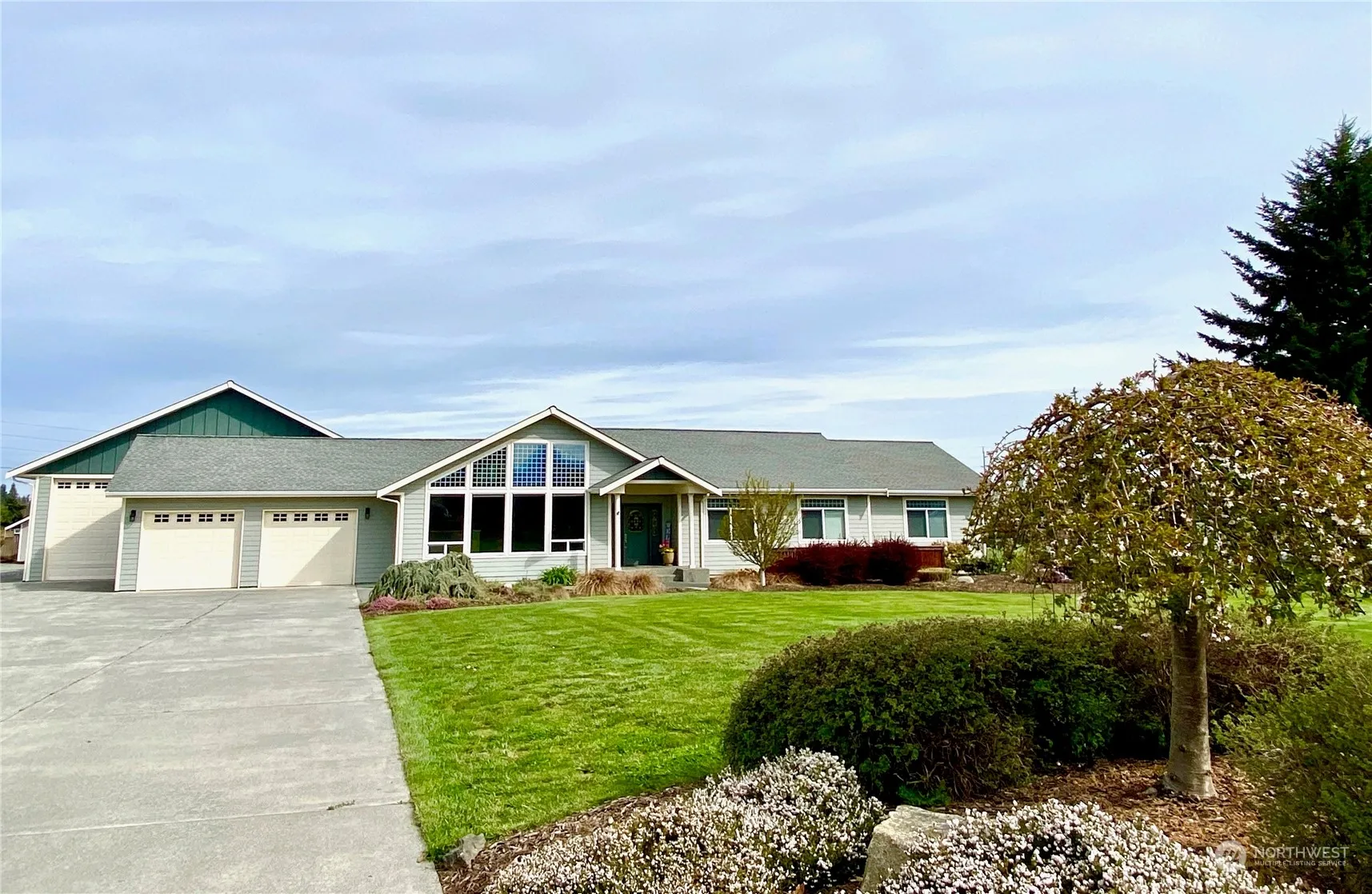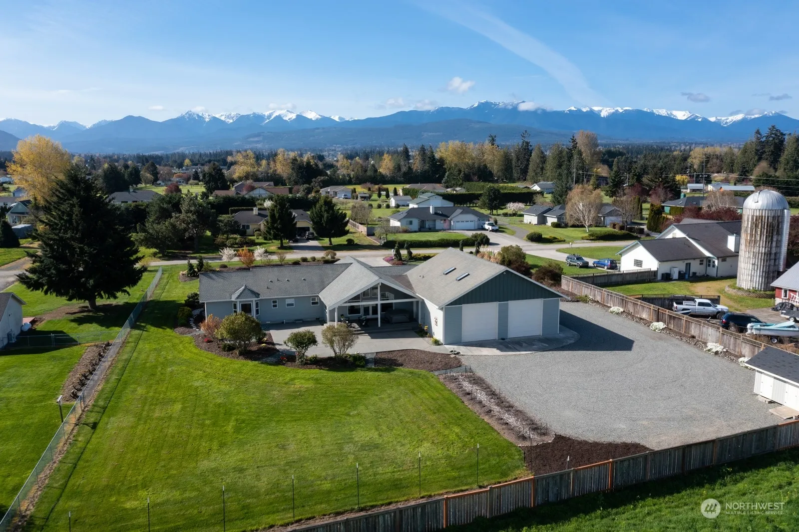 Tucked back on a quiet street, this single-level home showcases captivating landscaping & offers superb mountain views from nearly every room. The sunny great room features vaulted ceilings & large windows and opens to the dining room & seating area w/fireplace. The kitchen features an island w/cooktop and new granite countertops & backsplash. It’s adjacent to the dining room & patio for easy entertaining. The primary bedroom suite offers a walk-in closet & a spa-like bath w/jetted tub & twin vessel sinks. There’s a sizable 2-car garage & a huge 1550 sq ft shop/RV garage with 3 12 ft doors. Relax in the spacious fenced yard featuring lg patio, fountain, garden shed, dahlia & veg garden beds. Mins to shopping, medical services & recreation.
