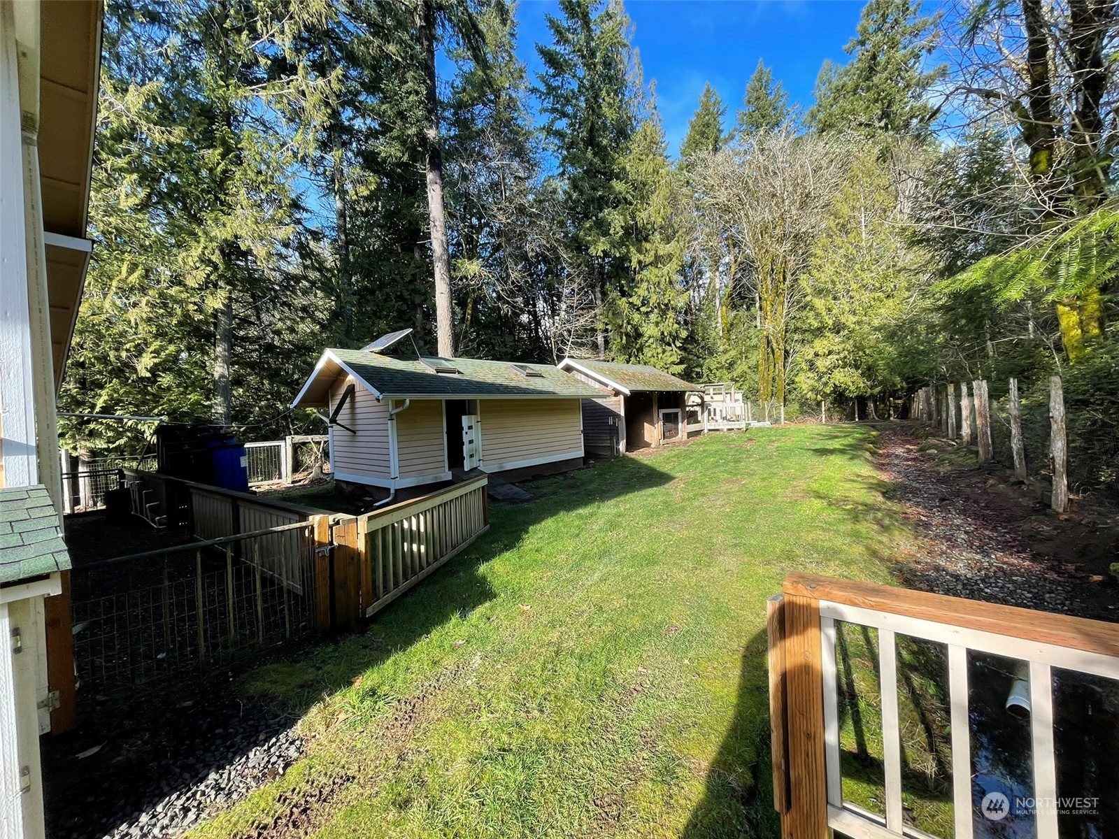 Remarkable 6.63-acre property w/ code gated entry, fully fenced upper area, creek below, access to Mclane Cove w/huge two story, newer pole barn w/ enclosed space for 5th wheel and livable, large, finished room upstairs w/ wood burning stove, laminate hardwood floor, skylight; many solar panels provide electricity all over stored in batteries; leased propane tank, shared well, power pedestal at gate entry, outbuildings include enclosed chicken coops, storage, greenhouse, etc. Water collection to 8 barrels that irrigates fruit orchard and large garden area via solar run pump. Too many features to mention! Just need septic system. Minimalist survivalist dream property. Self-sustaining w/o electricity. Must see!