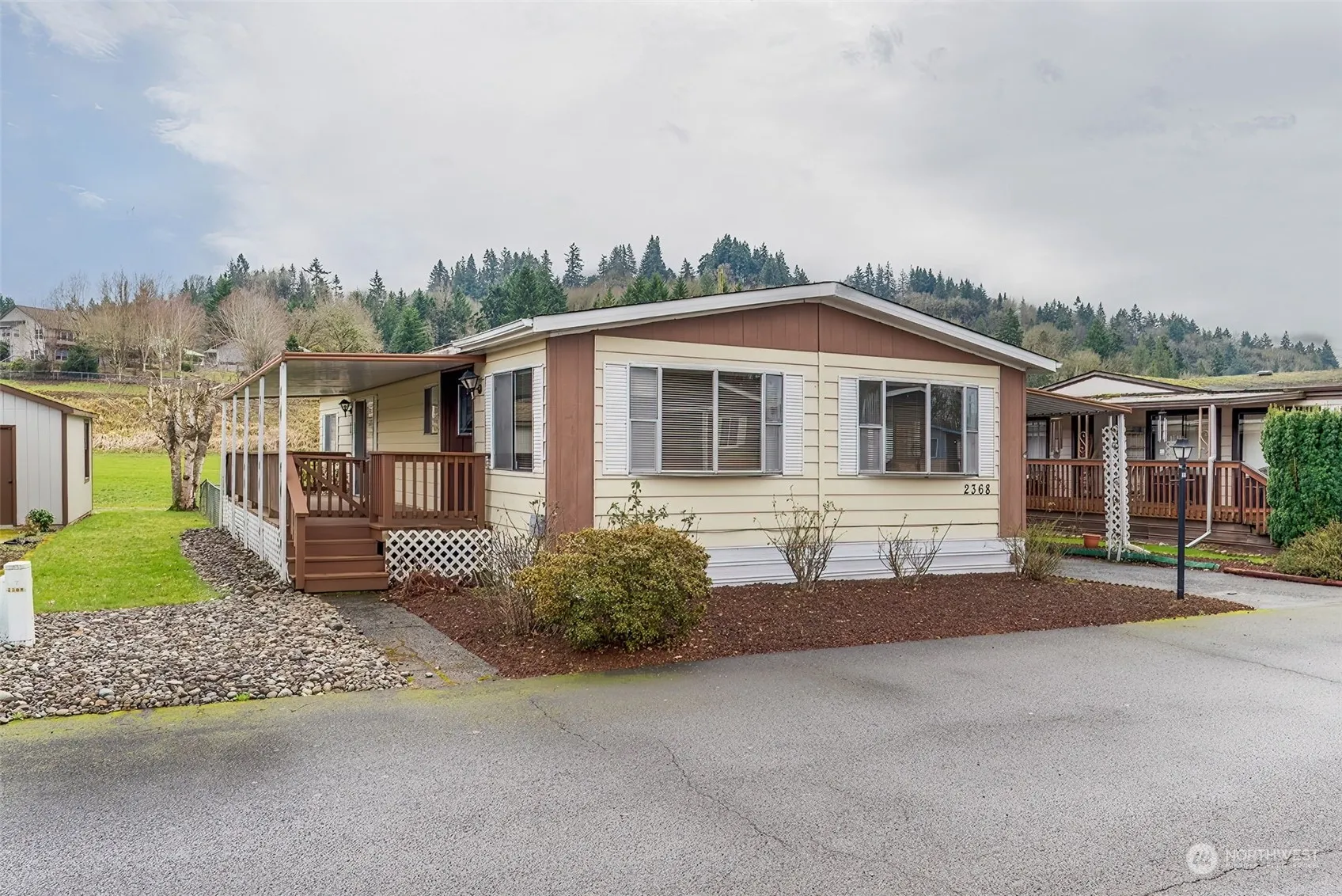 NEW ROOF. Spend your evenings on this shady covered deck. With a front living room and large primary bedroom in the back for quiet evenings, spacious second bedroom, kitchen with a breakfast area, dining area with slider for easy entertaining. Great floor plan. Large covered deck to enjoy those cool summer nights. Home backs up to the walking path. Fenced back yard. Conveniently located close to I-5 and shopping. RV Storage is available. Brookhollow is a 55+ community.