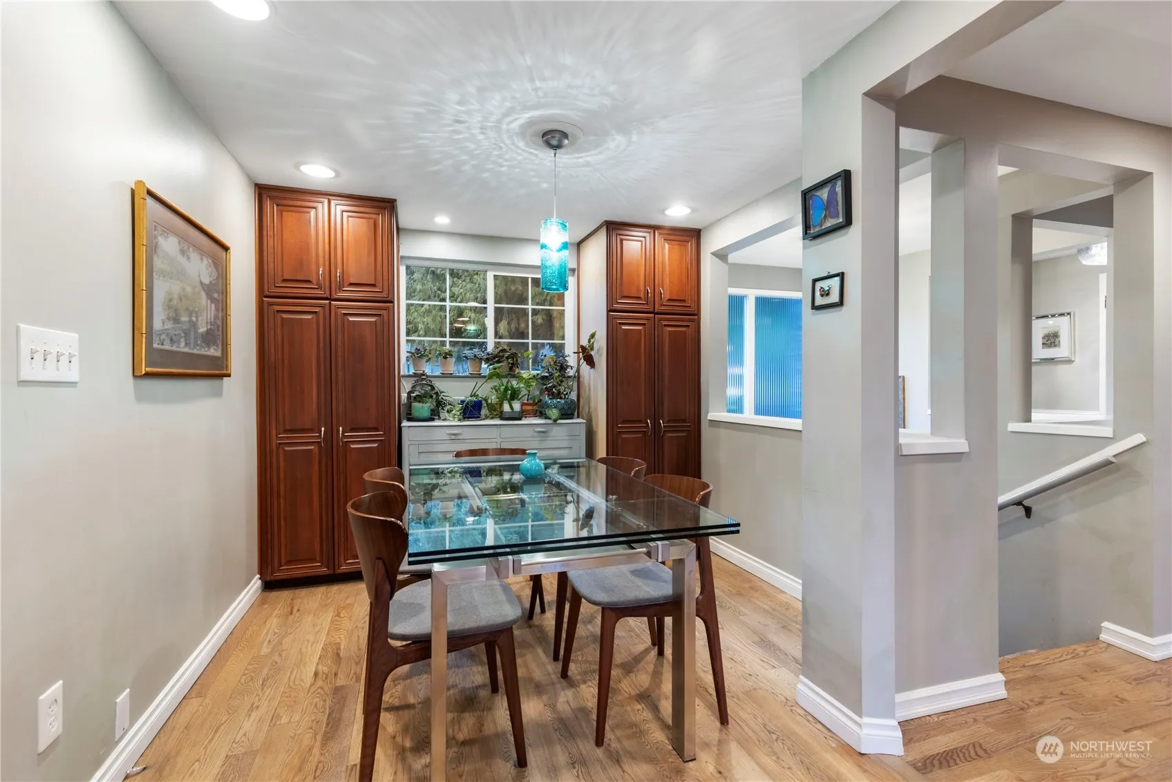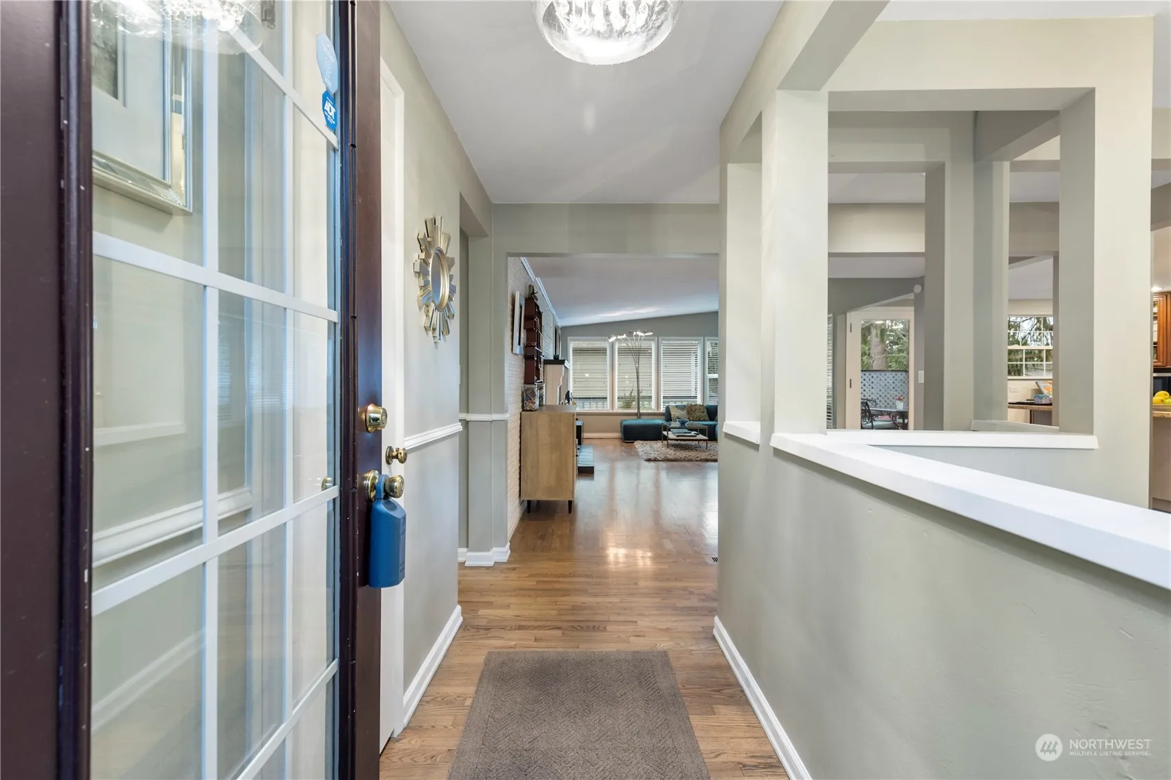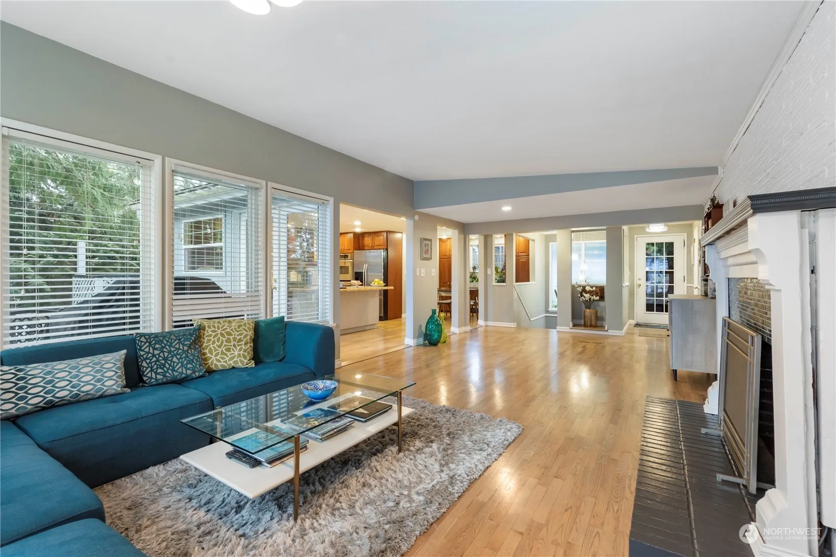 Rare Mid-Century Modern on almost ½ acre in the heart of Shoreline! Tastefully remodeled to give that newer feel! 5 bedrooms or huge family room-you choose! Newer kitchen w/rich wood cabinets, SS appliances & granite counters w/eating bar. Main level boasts of hardwood floors throughout, gas fireplace in huge living room, formal dining rm, 3 bedrooms & French doors leading to entertaining size deck. Lower level has primary bedroom w/2nd gas firplace & walk in closet, lovely soaking claw foot tub & huge family room & even a seperate workout area! You will show off this spring w/the 100’s of plantings in the yard! Easy access to I-5, and coming light rail. Minutes to elementary school.