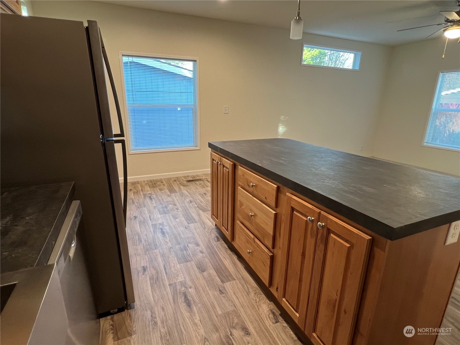 Welcome home – Brand-New 2-bedroom, 1-bathroom manufactured residence that redefines contemporary living. Tucked away in a tranquil park, this property combines modern comfort with stylish design, providing an open and inviting atmosphere that feels like home the moment you step inside. As you enter through the front door, you’re greeted by a spacious and well-lit living space, seamlessly connected to the open kitchen. The kitchen, a culinary haven, showcases stainless steel appliances, including a refrigerator, stove, dishwasher, and microwave. This sleek and modern kitchen not only emphasizes functionality but also adds a touch of sophistication to the heart of your new home. The utility room has rear door access to back area.