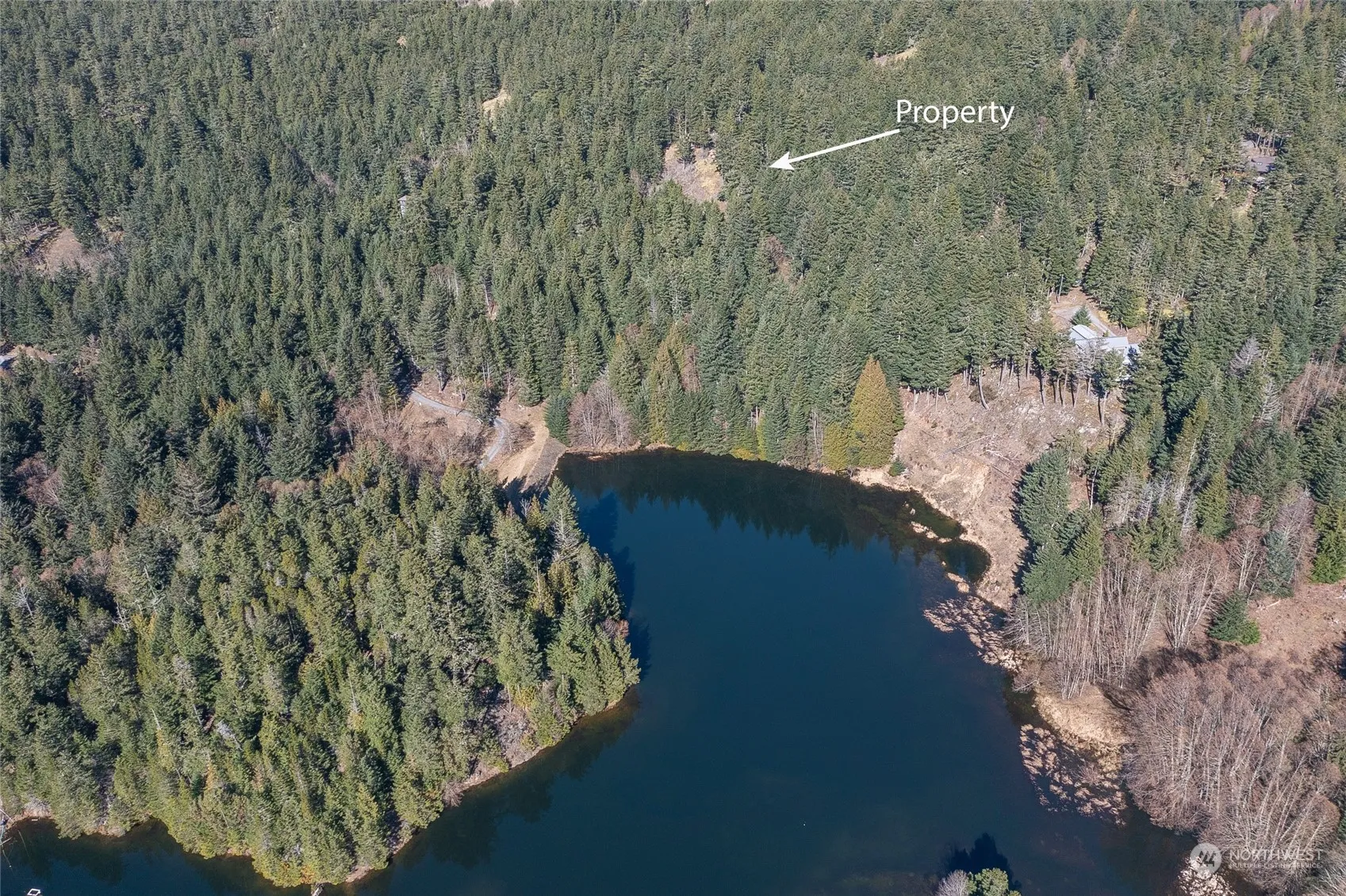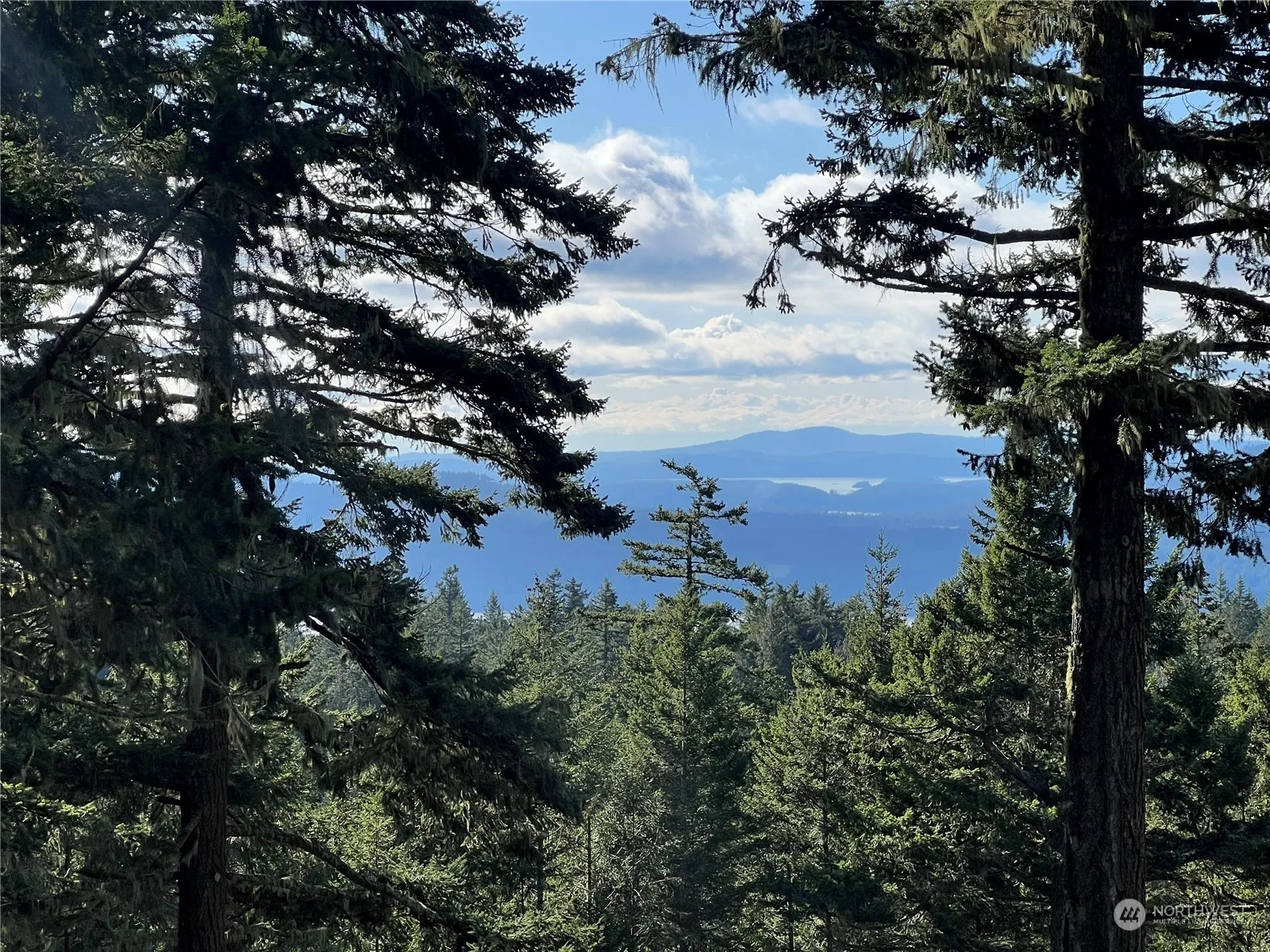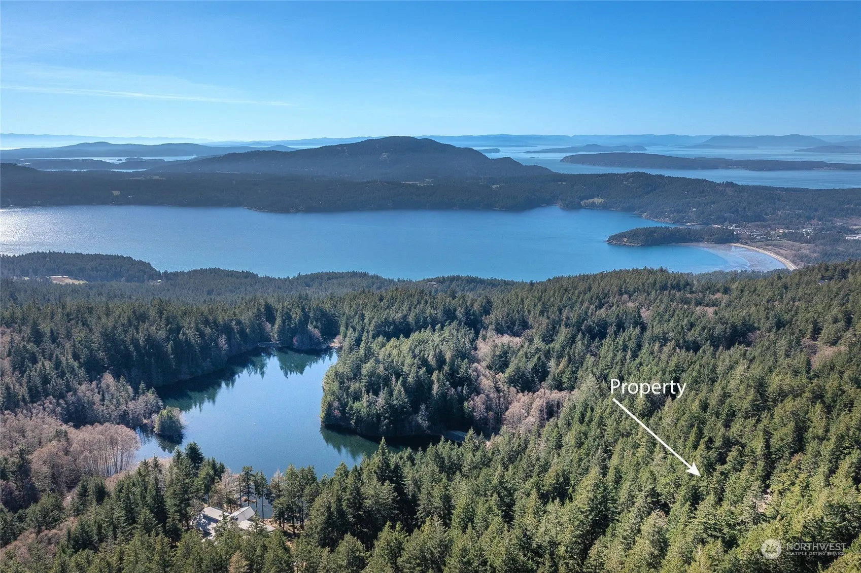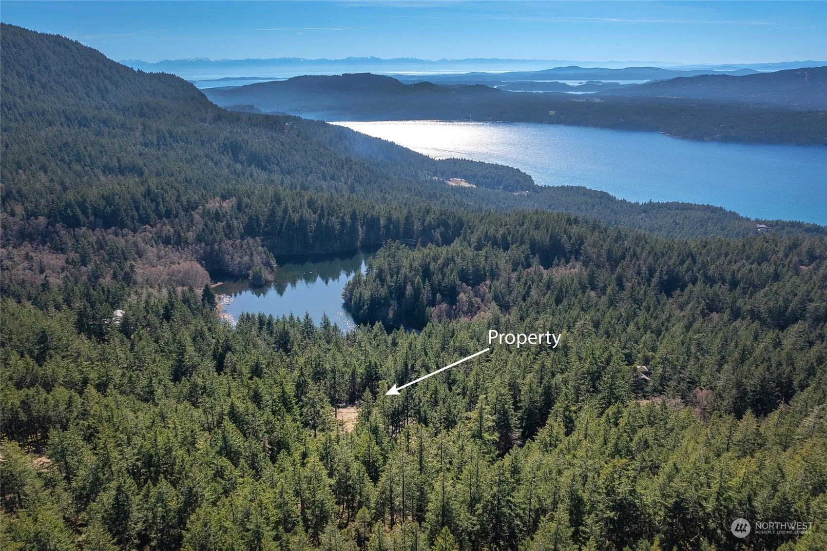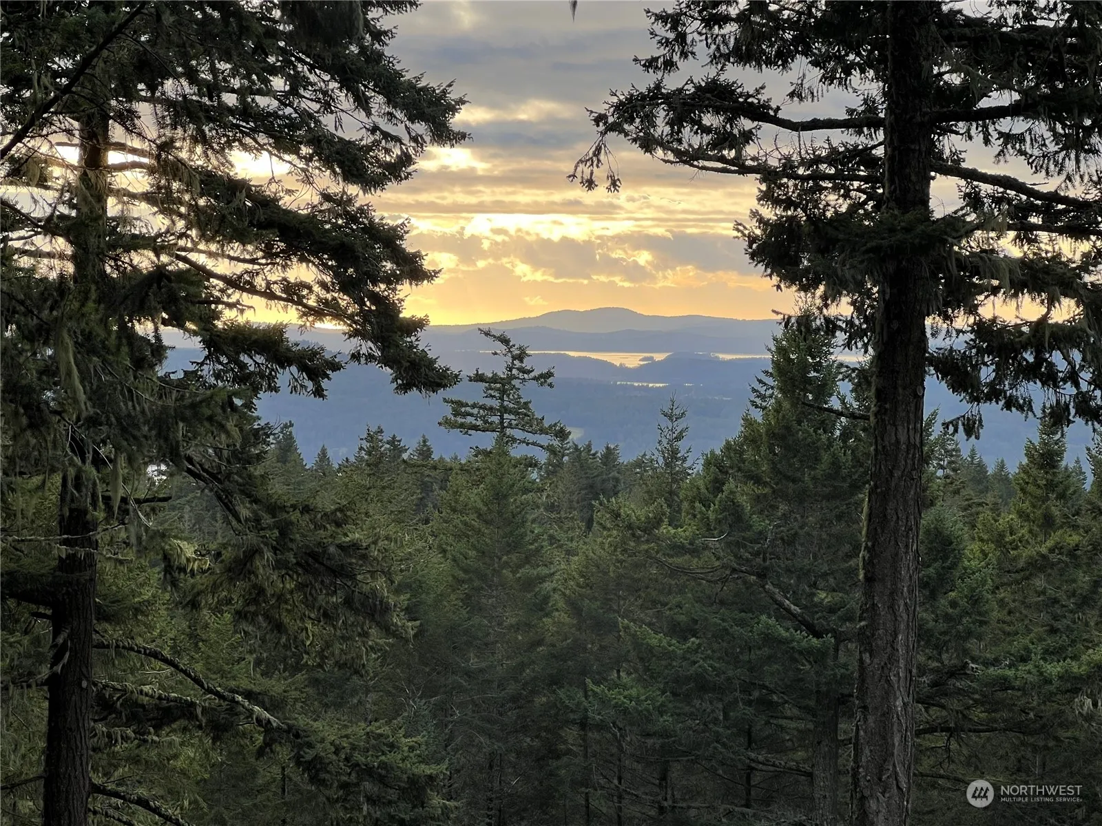 Enjoy sunsets year-round. Marine and Mt Constitution views from 1200′ feet on Buck Mountain. 5 acre parcel on Helmsmens Way abuts Lake Purdue, a non-recreational water reservoir. Very quiet area, far from any distant road noise, but only 10 min to Eastsound. Easy roughed-in access road to cleared building site. Thick forest and moss covered rocks covering the sloped portion of the property down to the lake. Pictures are from foundation level; view will be much better! Eastsound Water membership, power, phone and Rockisland Fiber in road. HOA maintained roads with annual dues $940. Seller has ADU eligible 2 bed guest house/garage in final SJC permitting. Architectural plans and renderings included. Septic design approved for 6 bedrooms.