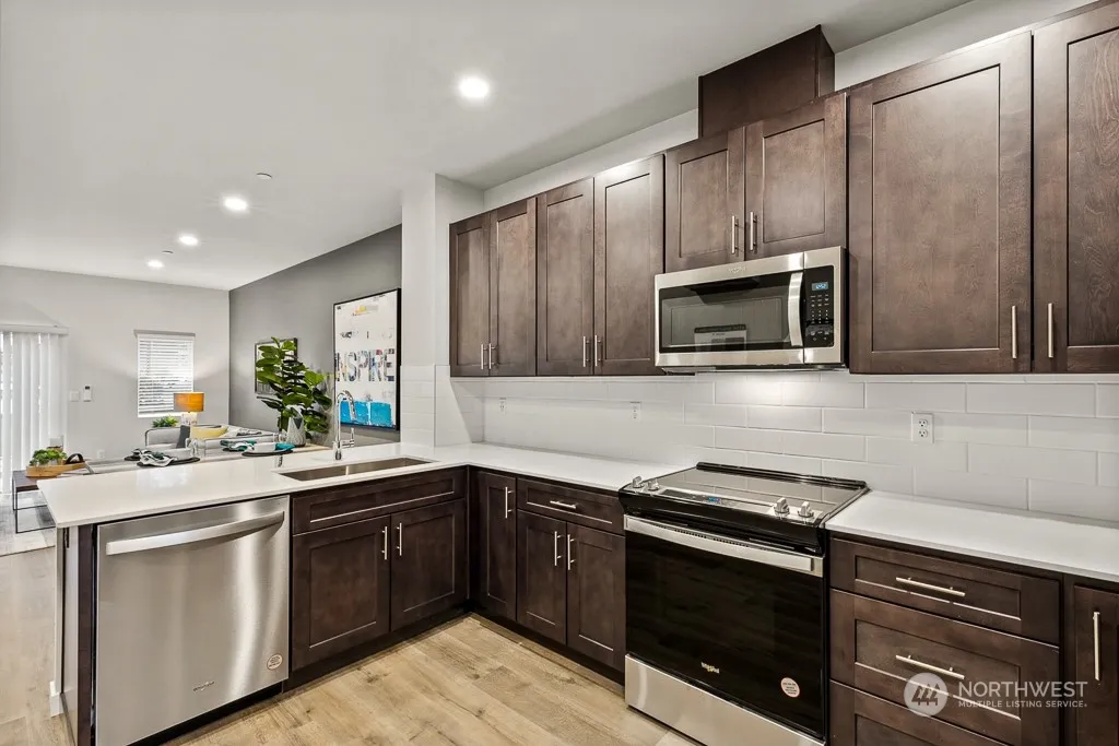Corner Unit now available!!! Only 2 of the Cameron floorplan left in the community. Don’t miss your chance to live in this desirable community. Final Few! Welcome to The Towns at North Creek! Here you will find thoughtfully designed contemporary townhomes with open concept living, combined with all the luxury finishes you expect! The Cameron plan offers a spacious and open floor plan with main floor bedroom, gourmet kitchen, dining, great room and deck, perfect for entertaining! Upstairs you will find an elegant primary bedroom with ensuite and second bedroom with a full bath. The 2 car-garage provides ample storage space! Buyers must register their broker on the first site visit.