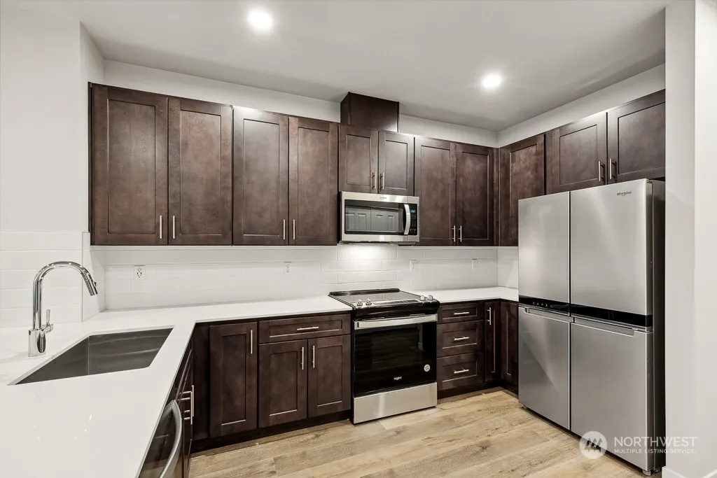 FINAL FEW!! Don’t miss out on the The Towns at North Creek! Here you will find thoughtfully designed contemporary townhomes with open concept living, combined with all the luxury finishes you expect! Convenient central location near shops and restaurants with easy commute options and award-winning Northshore Schools! The popular 3-bedroom Cameron plan offers a spacious and open floor plan with one bedroom on the main floor, gourmet kitchen with seating bar, dining area, great room and deck, perfect for entertaining! Upstairs you will find an elegant primary bedroom with ensuite and second generous bedroom with a luxury full bath. The 2 car-garage provides ample storage space! Buyers must register their broker on the first site visit.