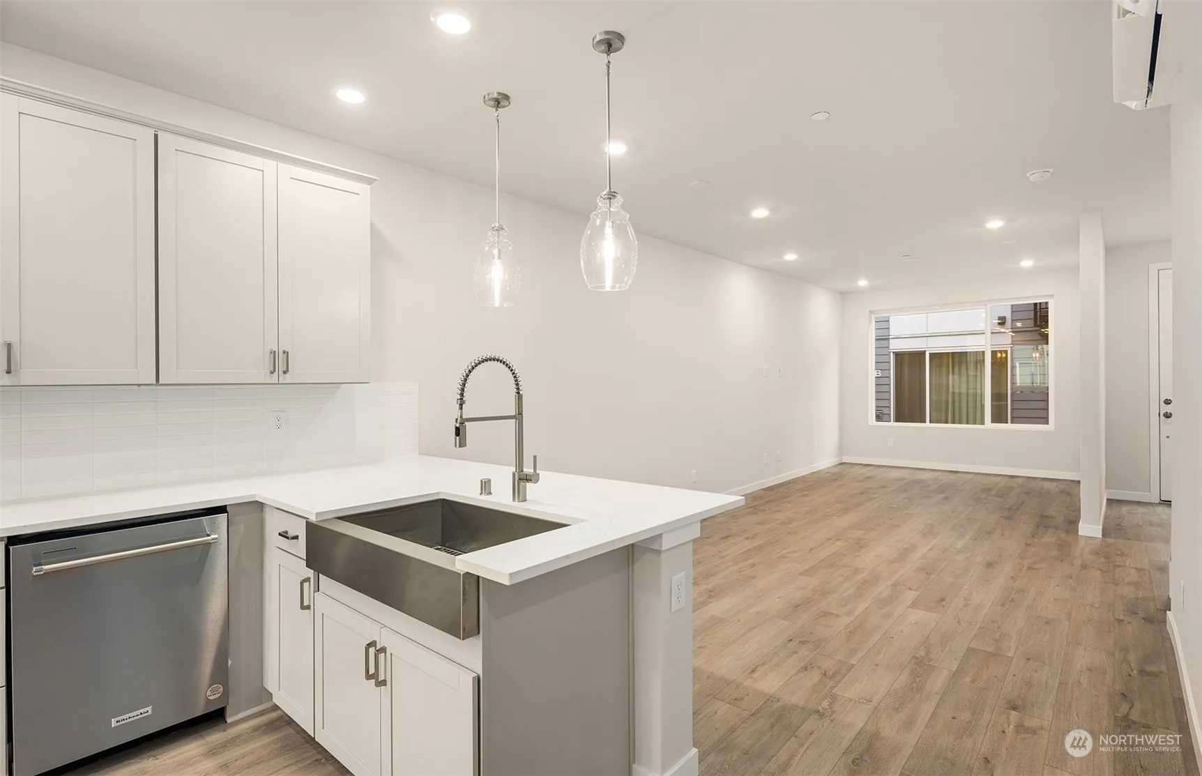 Welcome to 5 Degrees! Last One Available! Quick Move-In Price! This townhome community features modern architecture, exceptional interior designer finishes, and an extensive new home warranty! Enjoy your private ROOFTOP DECK. Main level features open concept living design, oversized windows for lots of natural light, eat-up peninsula kitchen island, and dining space. Brushed Nickel Fixtures/Hardware. Primary suite, secondary bedroom, laundry & full bath located on upper level. 2 car-tandem garage located on lower level. Walking distance to Shoreline Light Rail! All photos are from our staged model, finishes may vary. Ask about our seller financing incentives! “Buyer must register with their broker by completing a guest registration card.”