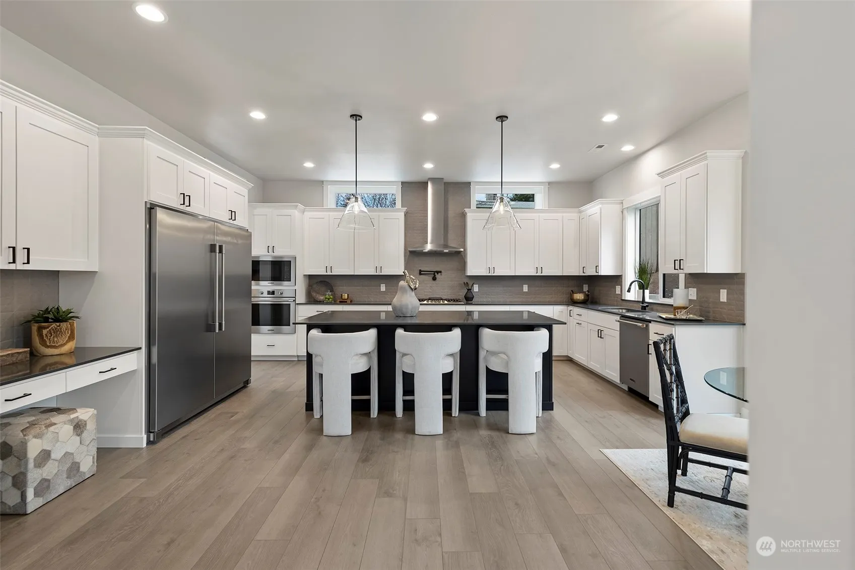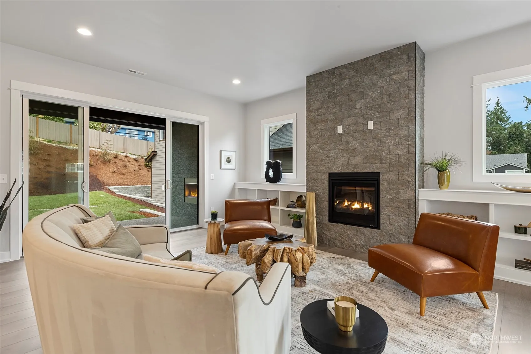 Introducing this brand-new construction home by Azure NW. This home offers unparalleled blend of modern luxury & timeless features. Open concept main level has formal dining, den/main level guest suite w/private balcony & 3/4 BA. Kitchen features large island, quartz counters, full height tile backsplash, pot filler, large fridge & walk-in pantry. Great room w/stone surround gas FP & custom flanked built-ins. Year round entertaining w/covered back patio & liner gas FP. Retreat to the primary suite w/ dbl doors, tile floors, glass shower, free-standing tub, & dual walk-in closets. 2 bedrooms, bonus rm & laundry with storage and sink upstairs. Reg Policy: Brokers must register buyers prior to or @ 1st visit.