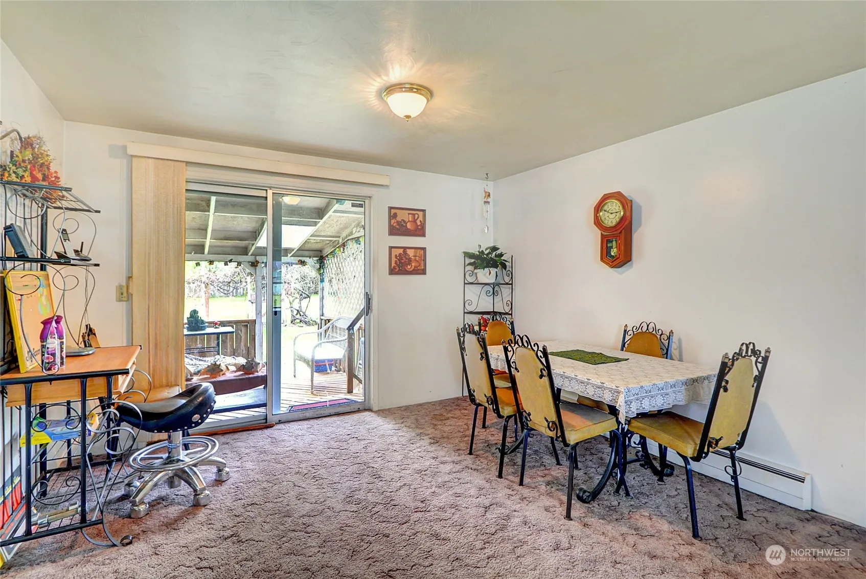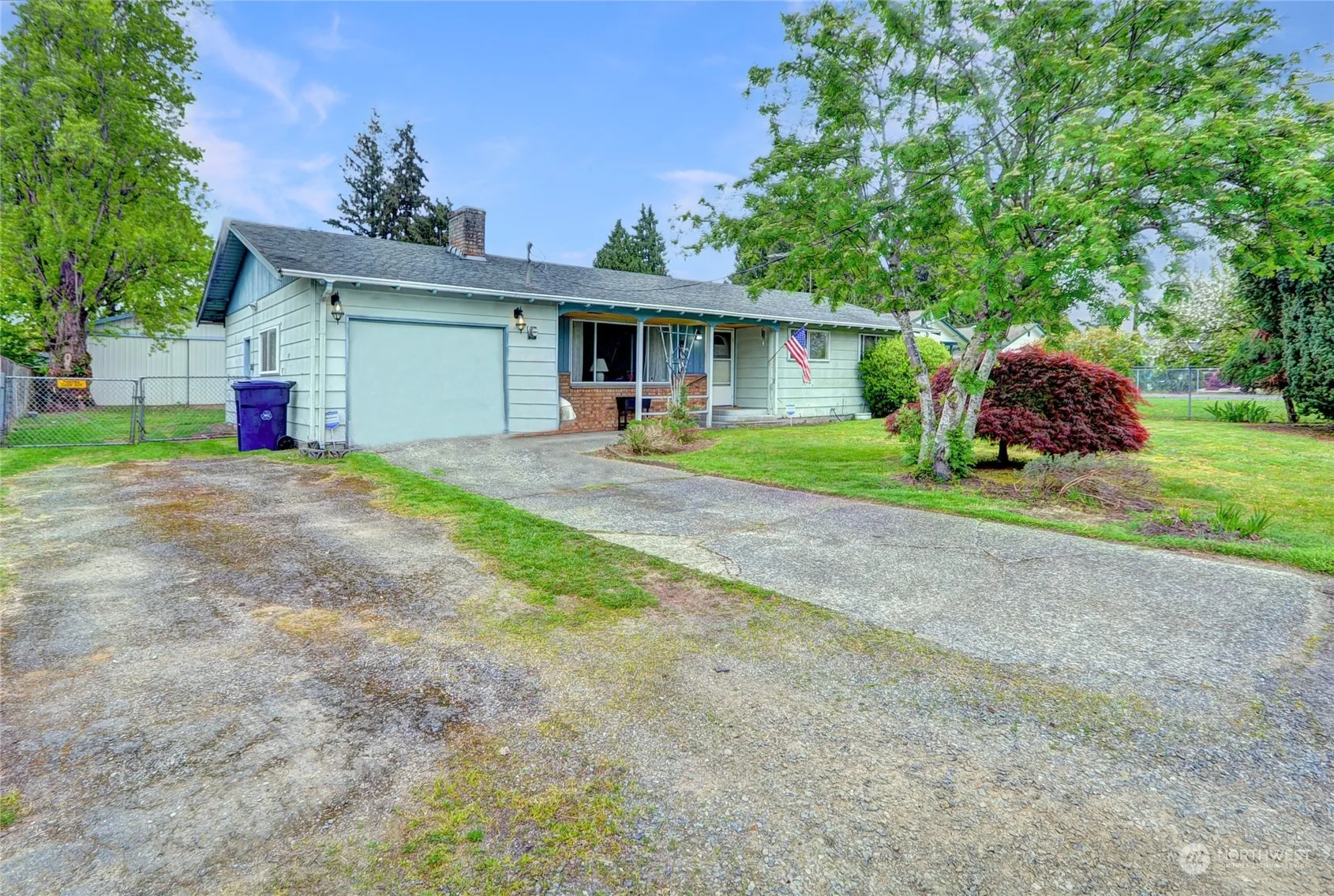 Classic rambler with a 36×40 SHOP in the heart of town! Ready for your design, this home offers 3 bedrooms, 1 full size bathroom with 1,240 sq. ft of living space. Covered front entry, spacious living room with wood stove, galley kitchen leading to utility closet with washer & dryer. From the dining area, a slider leads to a covered deck and patio. Sitting on 1/3 of an acre, the yard is fully fenced with fruit trees, grape vines, & two additional outbuildings. Shop offers 2 sliding doors w/ wood burning stove & storage loft. Attached single car garage with extra storage & refrigerators that stay! Ample parking, room for an RV, Boat, etc. Close to I-5, shopping & amenities. Located on a quiet private drive! No HOA – Bring your ideas to life!