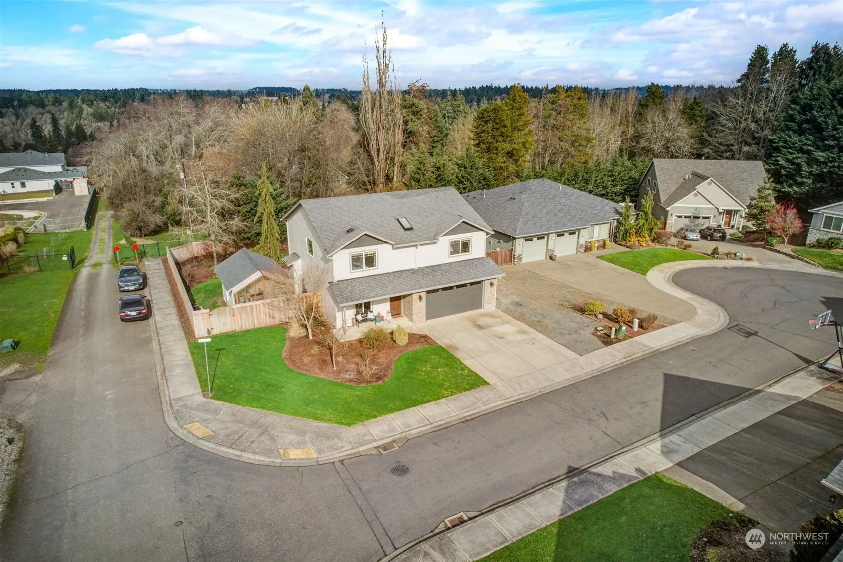 Stunning home in Felida! Meticulously maintained/updated home on cul-de-sac & backs to a Lama farm. Home office on main off entry, Hardwood floors, great room concept that opens to the beautiful kitchen with panty, granite countertops stainless steel appliances and gas range. Slider off dining area leads to large fenced back yard with stamped concert covered patio perfect for entertaining, listen to the waterfall/water feature as you watch the sunset. Shed with attached greenhouse for your green thumb awaits! The staircase leads you to 4 additional bedrooms or bonus room. Primary bedroom off the back with large walk-in closet, step into your primary bath where you will find your custom walk in shower and double sinks. This is the ONE!!!