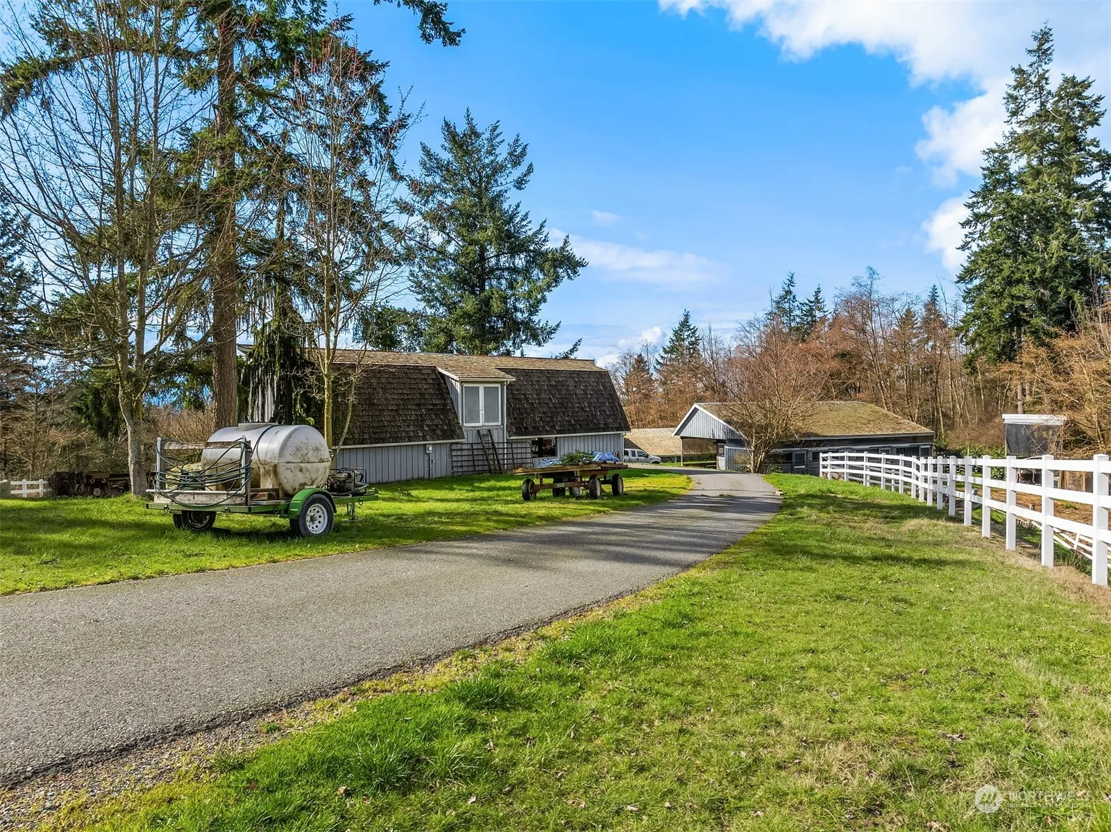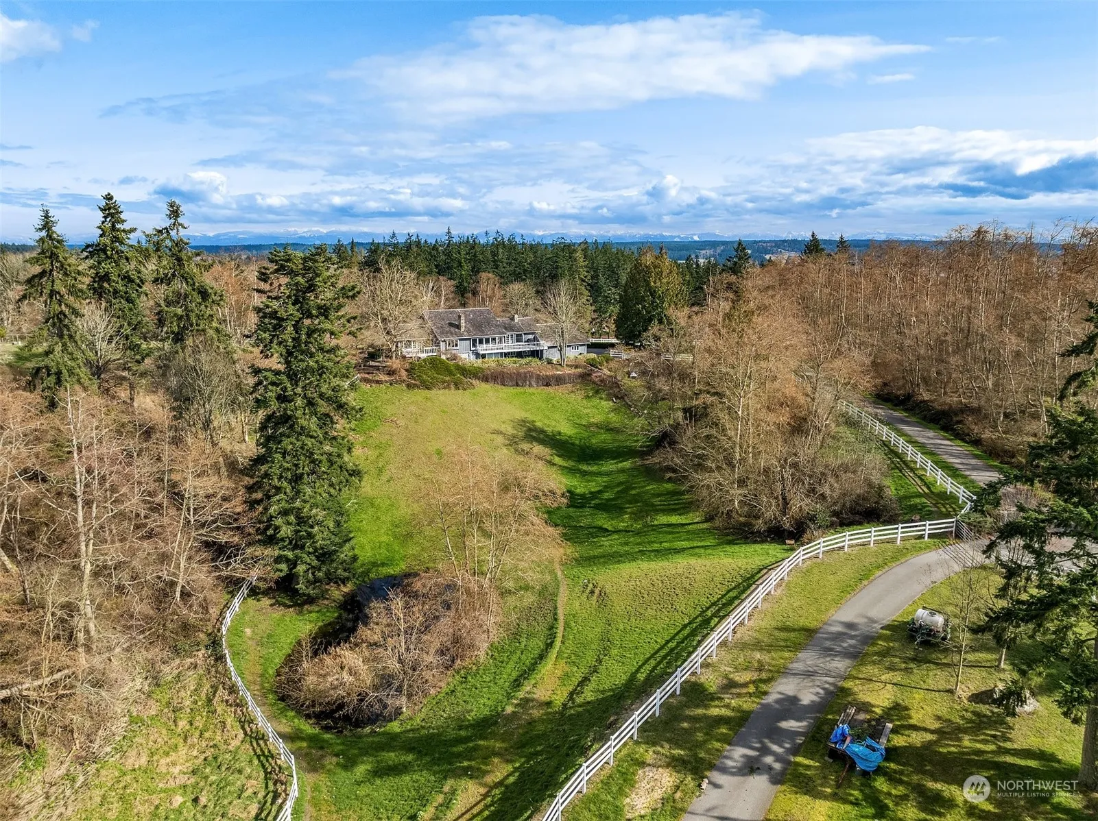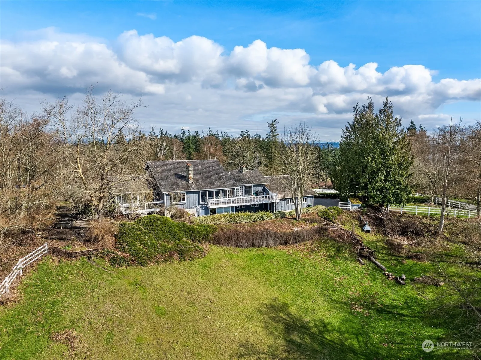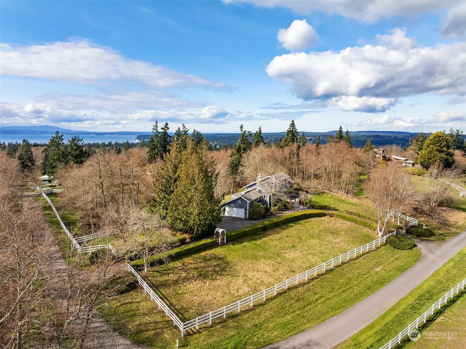 Imagine a 20 plus acre fully fenced equestrian property with beautiful sound, mountain and territorial views located between Double Bluff and Mutiny Bay on Whidbey. Two barns both with hot /cold water wash stations. There are 7 stalls in the horse barn and 5 pens in the main barn, along with a tack room, heated lab and office space, hay barn and equipment storage. Property includes both a large and small arena, outbuildings, two-car garage with three- attached carports. The home is open and bright with a large fireplace, bar, main floor primary bedroom, open loft, upper bedroom and bath and lower level with bedroom, kitchenette, and bath. Perfect location close to miles of horse trails. Love the life you live!