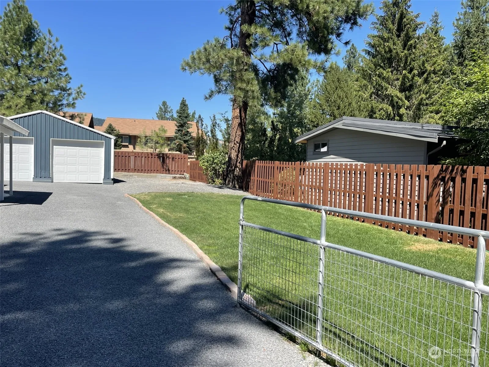 What a great property located right at the edge of town on a very private drive. Away from it all yet still just a short walk to downtown for shopping and dining. Completely fenced in and all level property with gorgeous views overlooking the golf course. The home has been nicely updated with new HVAC system, appliances, bathrooms, siding and more! This is truly a move in ready property with very low maintenance inside and out. Large shop is perfect for parking and toy storage! All level lot is fully fenced and private with lots of room for outdoor activities on this nearly 1/3 acre. Nice deck to enjoy the summer evenings and the peaceful setting of this home that is ready for you to make your own!