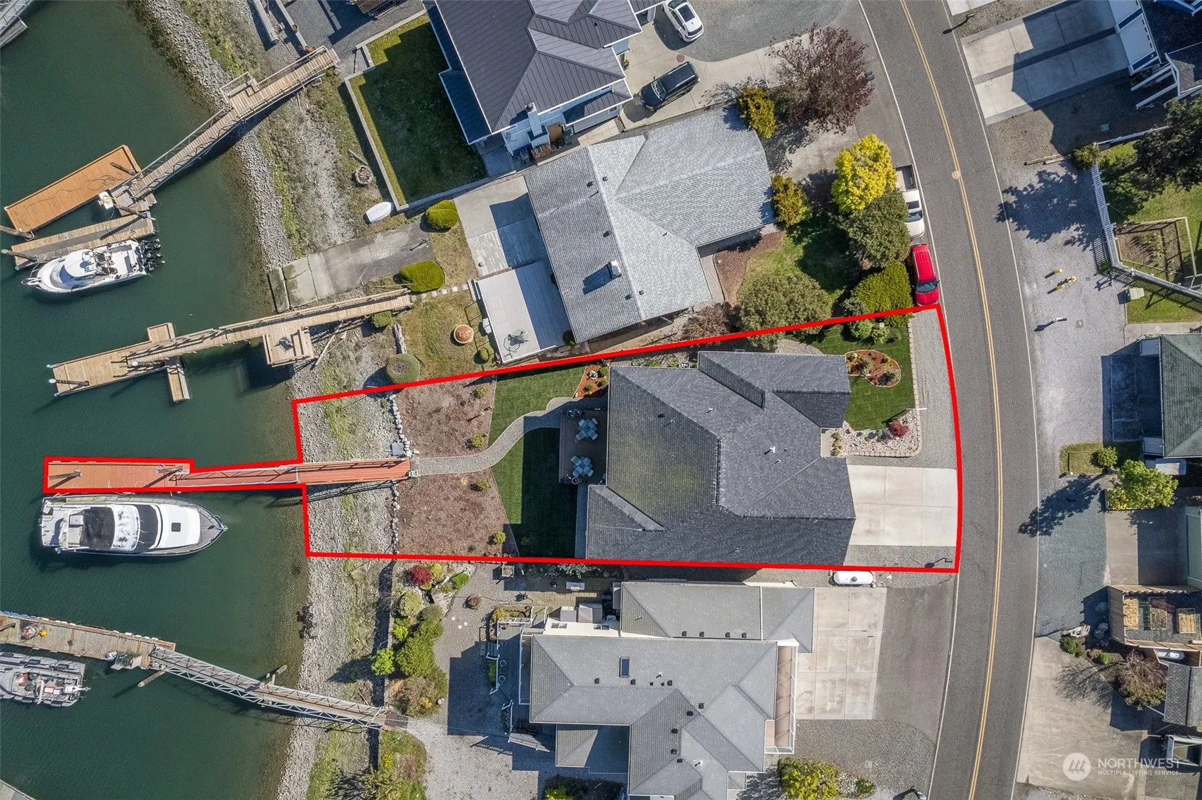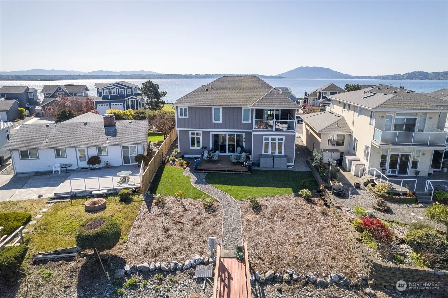 Talk about loving where you live! How about a 3 yr old 4 bd 3.5 bath beauty with seamless open floor plan, top quality kitchen featuring granite c-tops and high end appliances. Features two large primary bdrms with luxurious en suites one on main floor and one on second level AND it sits front row to one of this worlds most enchanting playgrounds, The Salish Sea and San Juan Islands make up your back yard. Walk off your patio, down your ramp to your private dock and you are minutes away. Located in the premier “The East Cove” (lots of room to maneuver) area of Sandy Point Shores Marina. The live action views from your waterfront marina property along with the pool, golf course and clubhouse this community offers make this a win/win.
