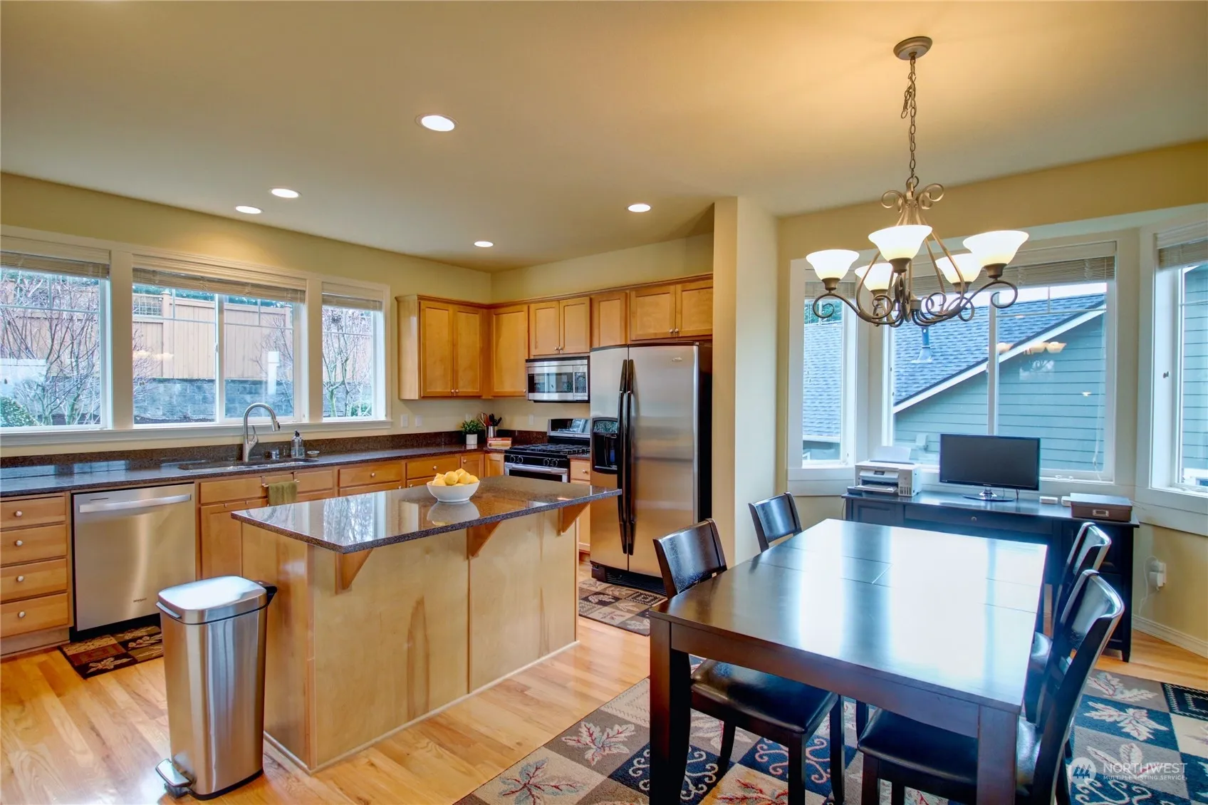 Stunning 3-bdrm, 2.5 bthrm, boasting 2246 sq ft of comfortable living space. Captivating blend of modern features & timeless elegance. Enjoy breathtaking westerly views that enhance the beauty of each day, w/high ceilings & an abundance of natural light. Step into luxury w/hardwood & new carpeting underfoot, providing a fresh & cozy feel. Spacious kitchen is perfect for culinary enthusiasts & the open floor plan seamlessly connects the living & dining areas. Deep garage will house 2 cars & extra storage, gas heat & hot water provide efficiency & comfort. Located in a great neighborhood, offers convenience to town amenities, hospitals & easy access to I-5. New dishwasher & hot water heater 2023, new deck 2021, exterior painted 2022.