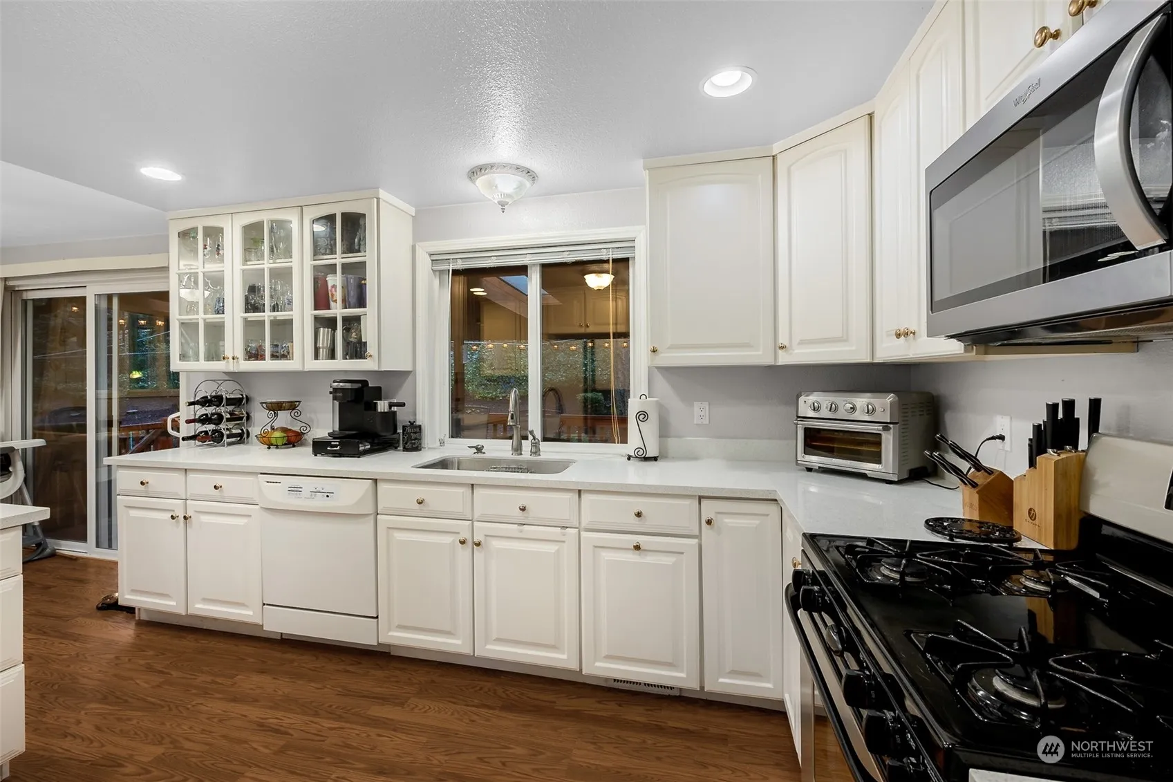 Huge price drop! Nestled at the end of a quiet cul-de-sac in Gig Harbor, this charming home is surrounded by mature trees, offering a tranquil setting with quick freeway access, bypassing the Purdy backup. Minutes from shopping, schools, and the hospital, it provides both serenity and urban convenience. The property features a 3-car garage with RV/boat parking, while inside, new countertops grace the kitchen. The dining room extends to a covered deck, perfect for rain or shine. A NEW efficient heat pump/gas furnace combo ensures climate control with cooling, complemented by two gas fireplaces for ambiance and convenience. This home seamlessly blends comfort, style, and functionality. Landscaping is designed for minimal upkeep.