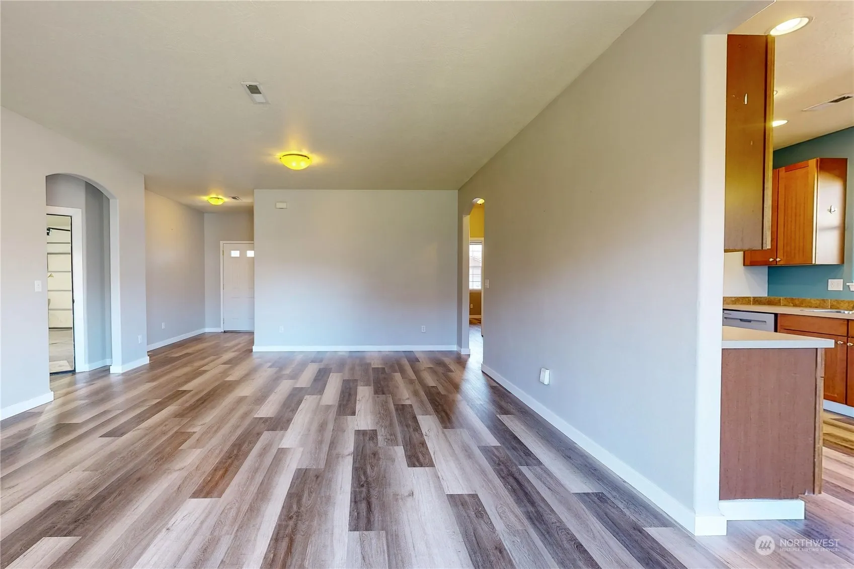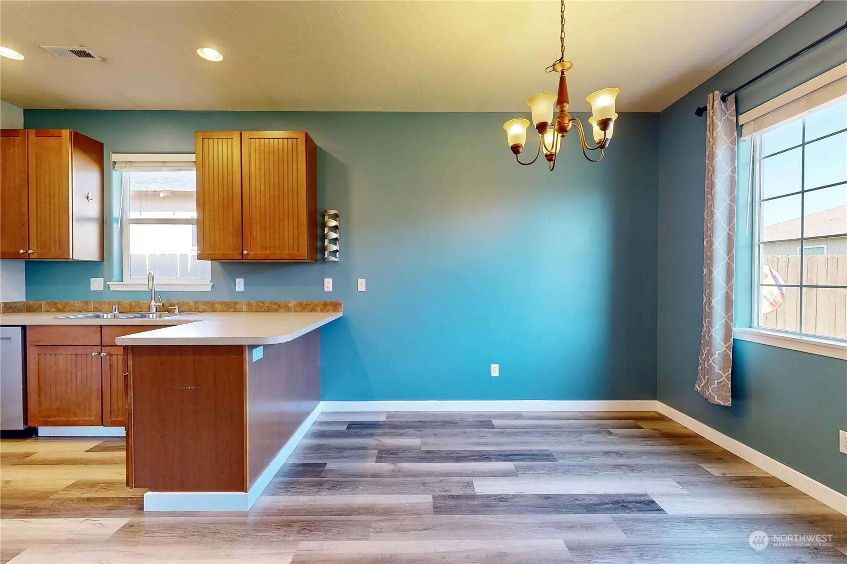 Welcome to one level living with a great floor plan! 3 bedrooms, 2 full bathrooms, updated plank flooring throughout, updated trim and paint, appliances and new HVAC in 2021. Tons of storage space, natural light, cozy gas fireplace and a separated spacious Primary suite. Fully fenced backyard complete with swing set and trampoline that stay with home. Large garage with a work bench and attic access for additional storage. Original owner of this Thad Sirmon built home!