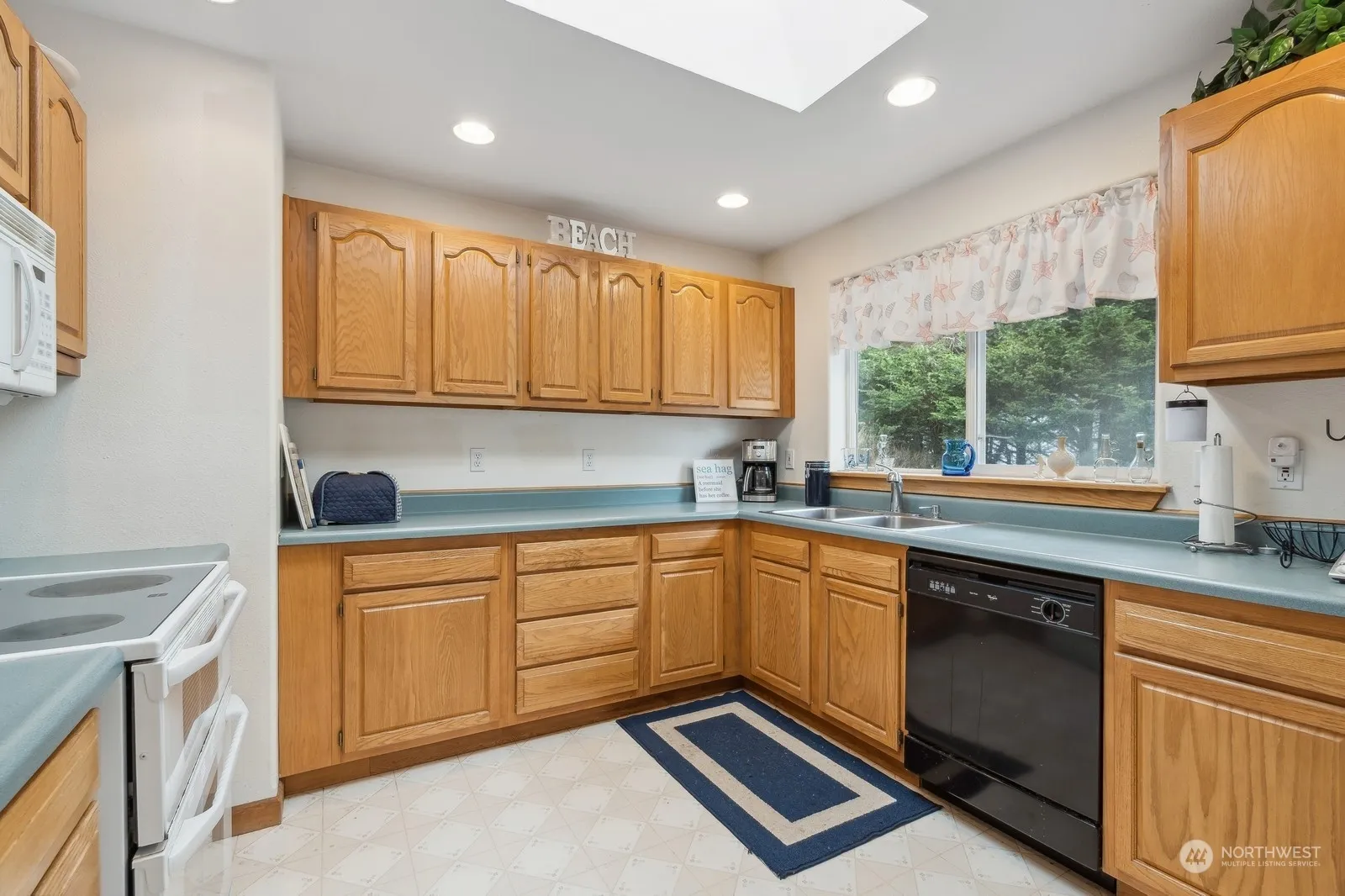 .**Charming Single-Story Home on a Double Lot in Ocean Shores!** Experience the perfect blend of space and comfort in this roomy three-bedroom home, situated on a DOUBLE lot. Ideal for entertaining, the expansive deck overlooks a fully fenced, secluded backyard with mature landscaping. **Oversized Living Room:** Ample space for family gatherings and guests. **Spacious Kitchen:** Equipped with plenty of storage, a double oven, and a garden window. **Cozy Family Room:** Enjoy the warmth from a standing wood stove and natural light. **Updated Main Bath:** Fresh paint and modern touches throughout. **Luxurious Primary Bedroom:** Features a private bathroom for added comfort. **Oversized 2-Car Garage & RV Parking.