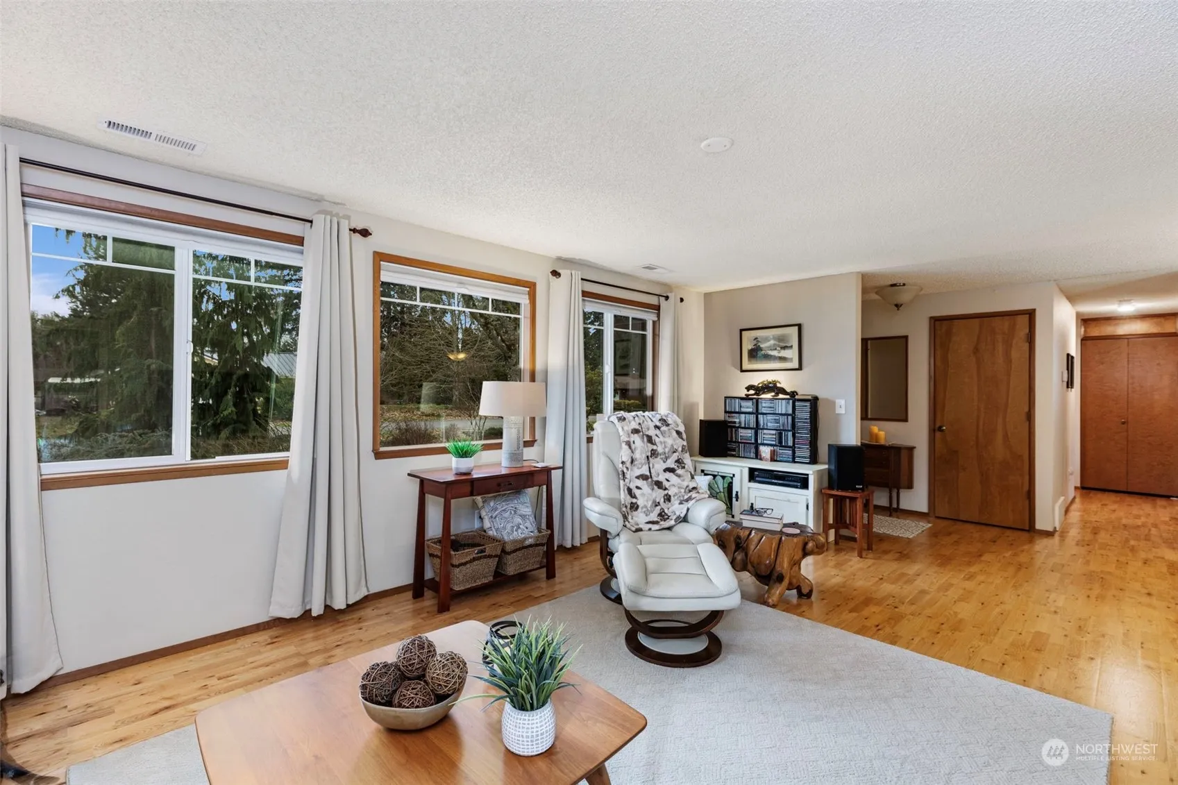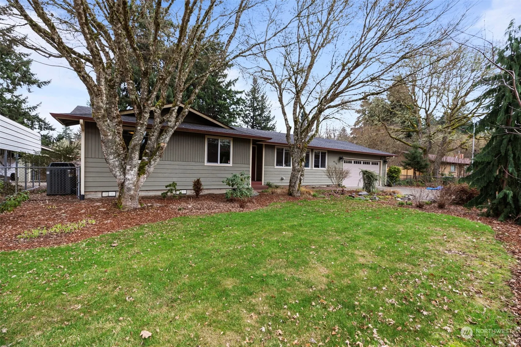 Tastefully updated through the years w/hardwood floors in lg living rm, dining, kitchen & hallway. Most recently the kitchen w/solid wood cabinets/pull-outs, granite counters, deep stainless sink SS appliances. Separate laundry & private half bath, too. Primary Bedroom w/direct access to the main bathroom w/its beautifully tiled, double shower & new solid wood vanity & quartz counters. 2 more nice size bedrooms-one currently an office w/built-ins. Great fenced back yard w/covered Trex deck, gardens, garden shed & 104 sq ft shop w/power & attic storage. Huge RV parking w/30’cover & utilities accessible. 2-car garage! Heat pump & gas furnace, tankless water heater. Enjoy this peaceful retreat! Offer review moved to 3-24-24, 5:30pm.