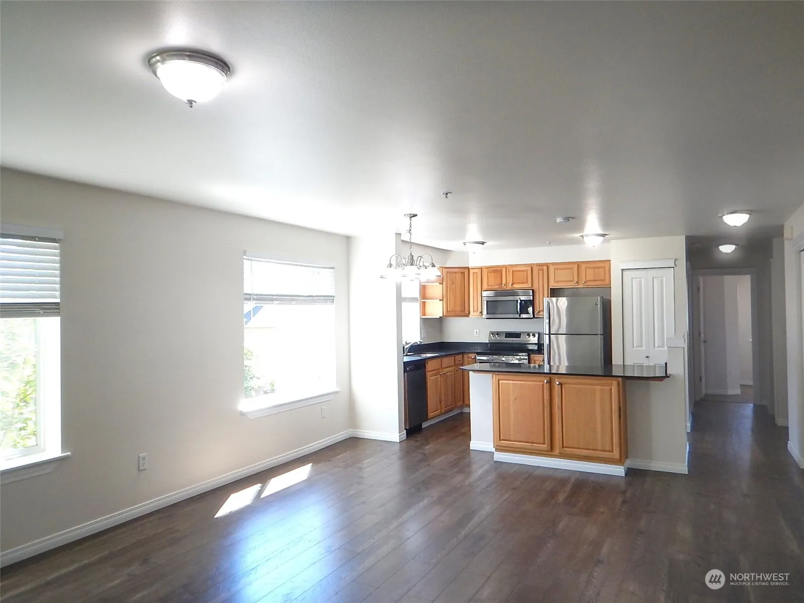 Price improvement on this delightful, move-in ready condo! Refreshed paint and solid surface flooring. Primary suite and private deck overlooking the green belt. Built-in shelving and gas fireplace in living or great room. End unit so extra windows make this light and bright. Kitchen with stainless appliances, quartz counters and bar overlooking the great room. Two more bedrooms and a second full bath. Great floorplan! Includes an oversized single car garage. Extra uncovered parking available. End unit on the second floor. Backs to greenbelt with a private deck overlooking nature. Trails meander through the NGPA behind the building. Convenient location close to highways and shopping. Bring your offer! Don’t miss out on this great condo!