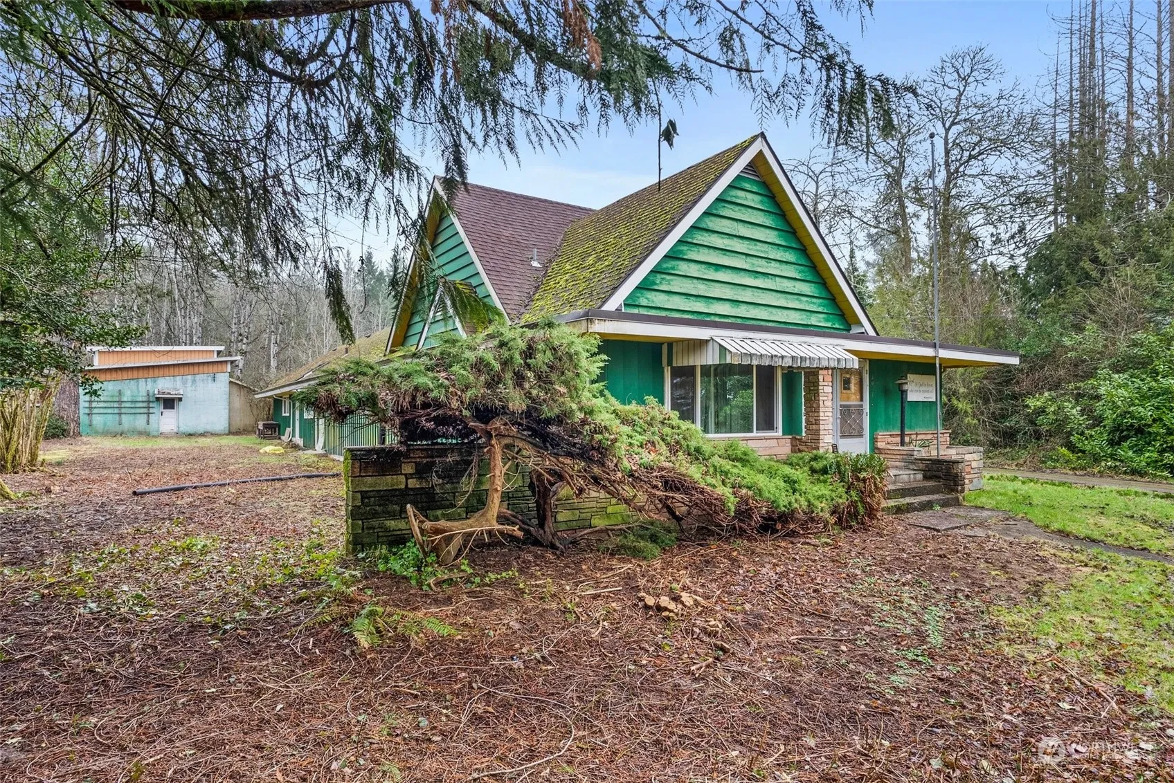Explore the untapped potential of this unique property! This 3bd/2.25bath home is nestled among the trees, offering a serene and secluded haven. A highlight of this property is the expansive shop that offers endless possibilities. Whether you dream of a creative workspace or a potential conversion, the large shop provides the canvas for your imagination. This offering includes not just one but two parcels, providing additional space for expansion, landscaping, or other creative endeavors. Imagine the potential for a lush garden oasis or additional structures to complement the existing charm. Schedule a viewing today and embark on a journey to transform this old-world gem into a timeless masterpiece!