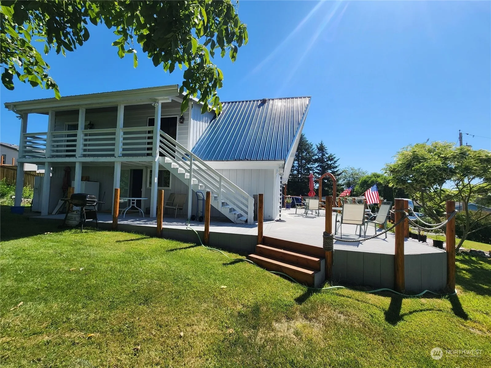 Your cottage close to the Beach with 3 bedroom 2 bathroom home. beautiful woodwork thru out the home, vaulted ceilings, open floor plan. large kitchen with breakfast bar, large dinning area with short walk in pantry under the stairs. I bedroom on the main floor and full bathroom, 2 large rooms upstairs with access to your upper deck and access to the outside. Garage can be used as a bonus room or garage, garage has a fireplace and tile floor. Huge wrap around deck out front. 2 outbuildings, pond, room for a garden and fruit trees included. RV parking on the side of the house and lots of parking.